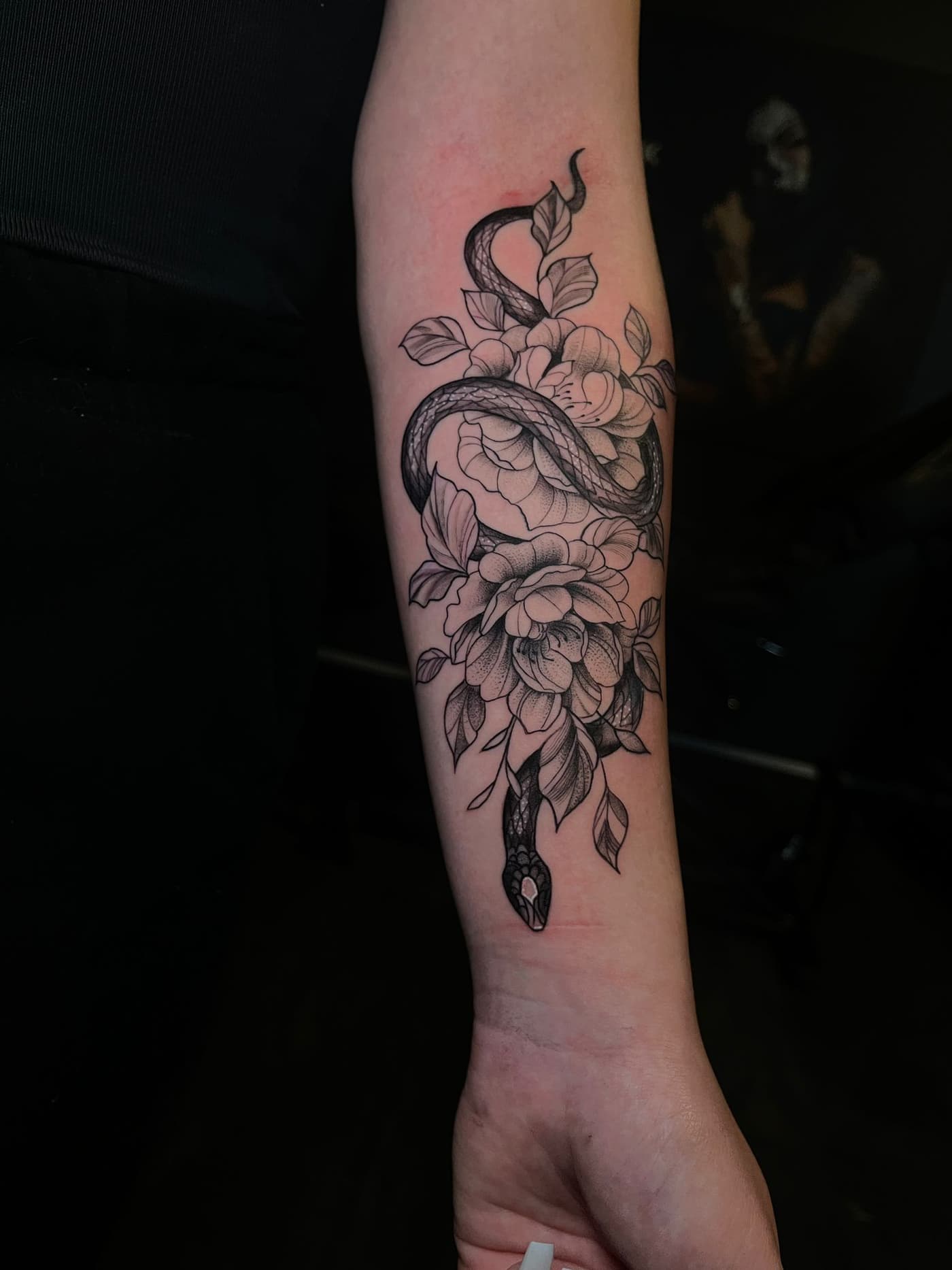 Bevorzugte Stile: Der Fokus liegt auf lebendigem Realismus, oft kombiniert mit surrealen und mythologischen Motiven in einer kraftvollen Black-and-Grey-Ästhetik.