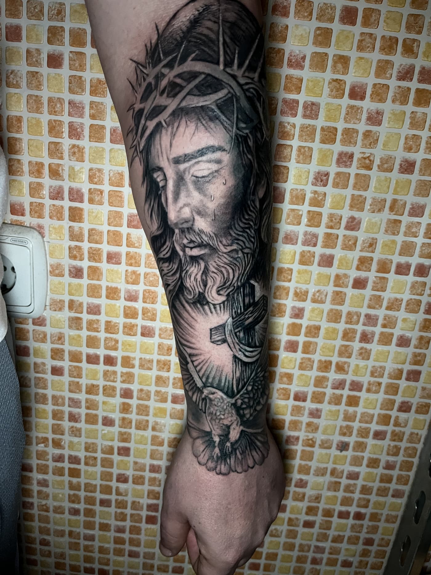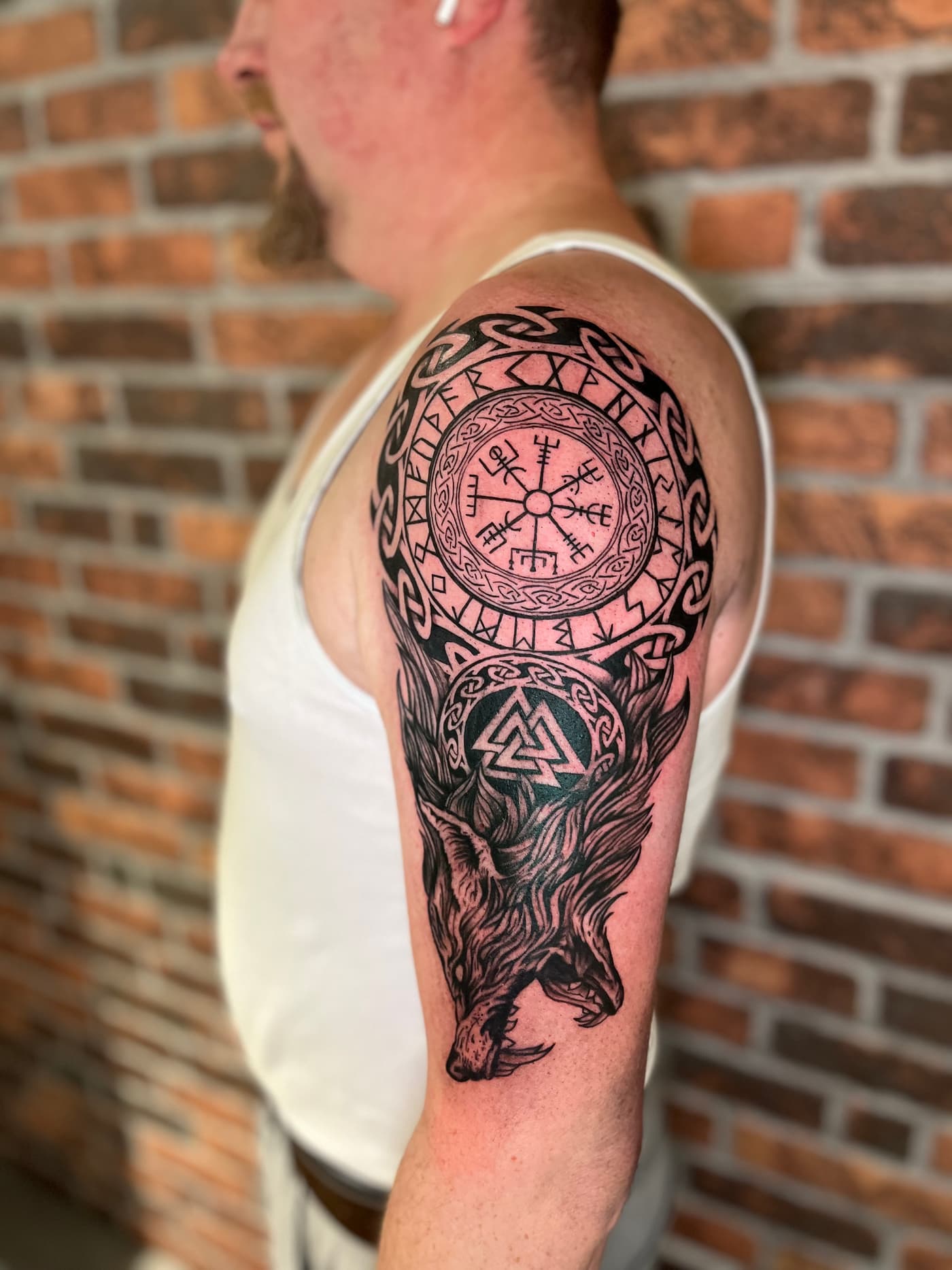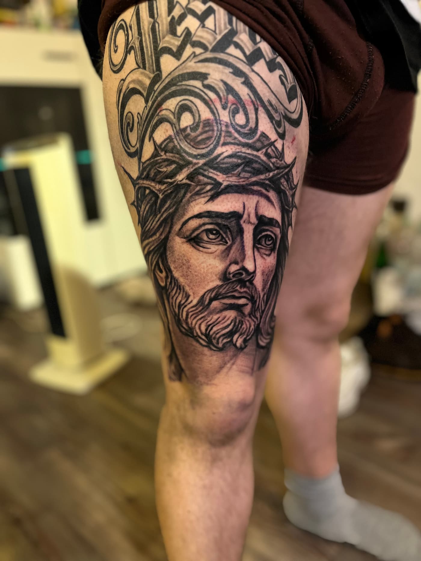 Der Schwerpunkt liegt auf detailreichen, schwarz-grauen Realistik-Tattoos, die oft durch geometrische oder spirituelle Symbole wie Mandalas ergänzt werden. Angelo setzt hierbei bevorzugt auf ästhetisch anspruchsvolle Naturmotive oder sakrale Geometrie, um klare Blickpunkte mit einer harmonischen Gesamtkomposition zu vereinen.