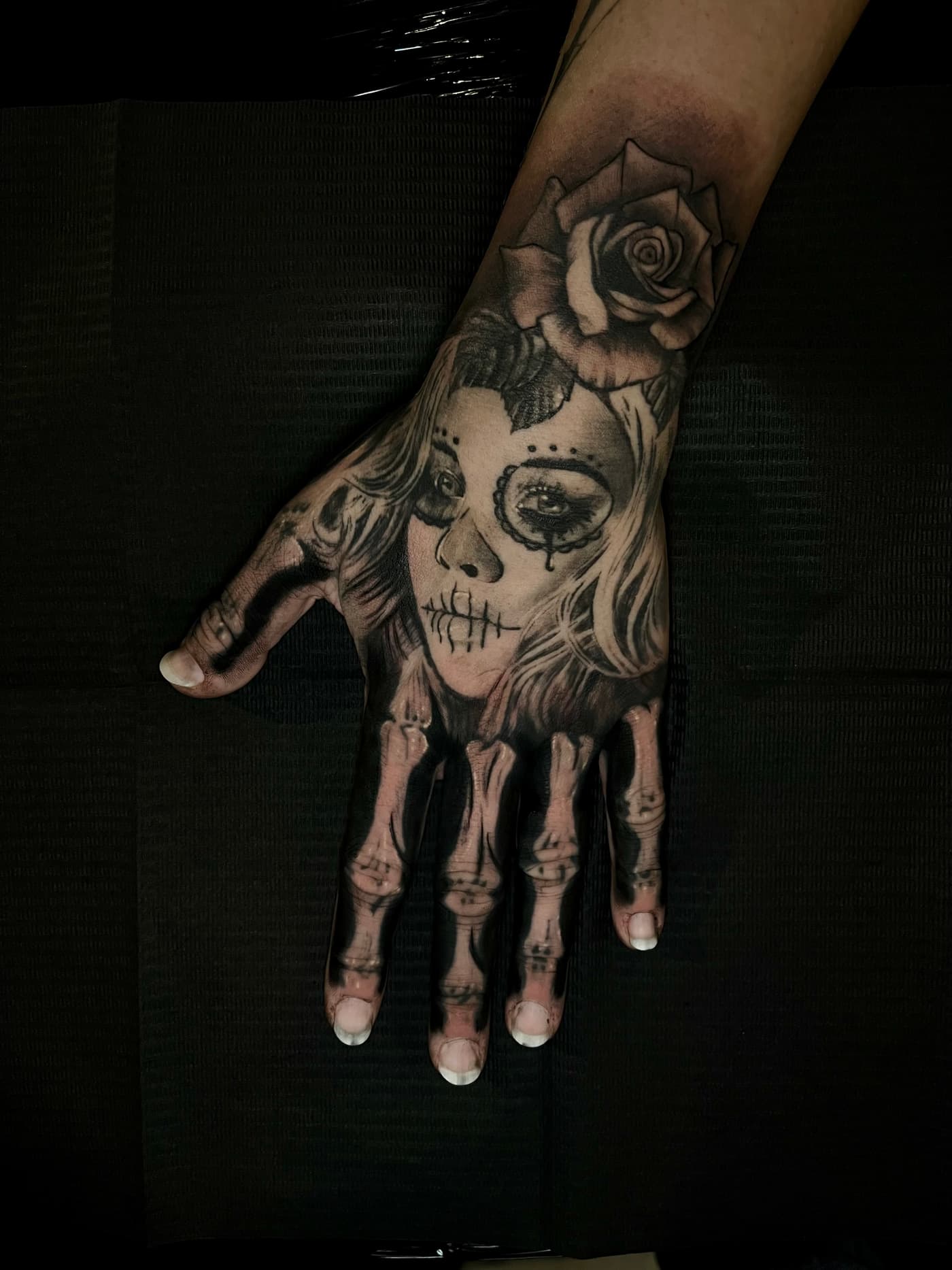 Angelo erschafft durch die Symbiose aus präzisem Dotwork und klassischem Black and Grey Realism ästhetische Kompositionen. Seine Arbeiten zeichnen sich durch eine tiefe räumliche Wirkung aus, bei der filigrane Mandala-Muster nahtlos in organische Elemente wie florale Motive übergehen.