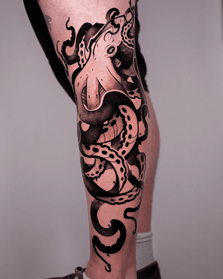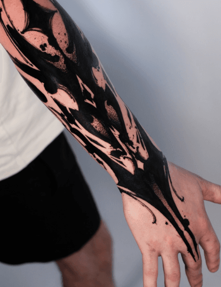 Meisterhafte Techniken: Bardak beherrscht den Blackwork-Stil und verbindet ihn gekonnt mit abstrakten Elementen, wodurch kraftvolle und fesselnde Tattoos entstehen. Seine Arbeiten zeichnen sich durch starke, dunkle Kontraste und präzise Linien aus, die abstrakten Formen Tiefe und Ausdruckskraft verleihen.