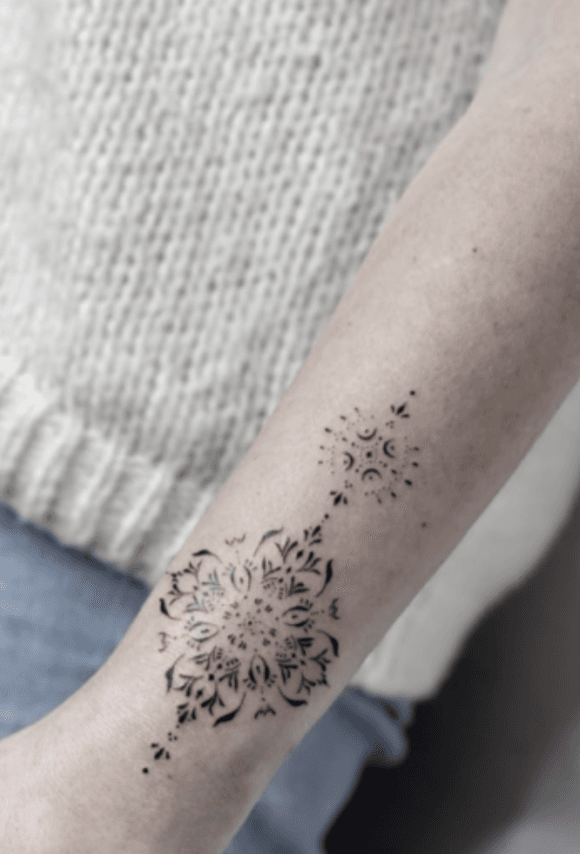 Willkommen auf der Detailseite von Carol – Ihre Tattoos zeichnen sich durch eine präzise Linienführung und feine Punktarbeiten aus, die jedem Motiv eine elegante und detailreiche Wirkung verleihen.