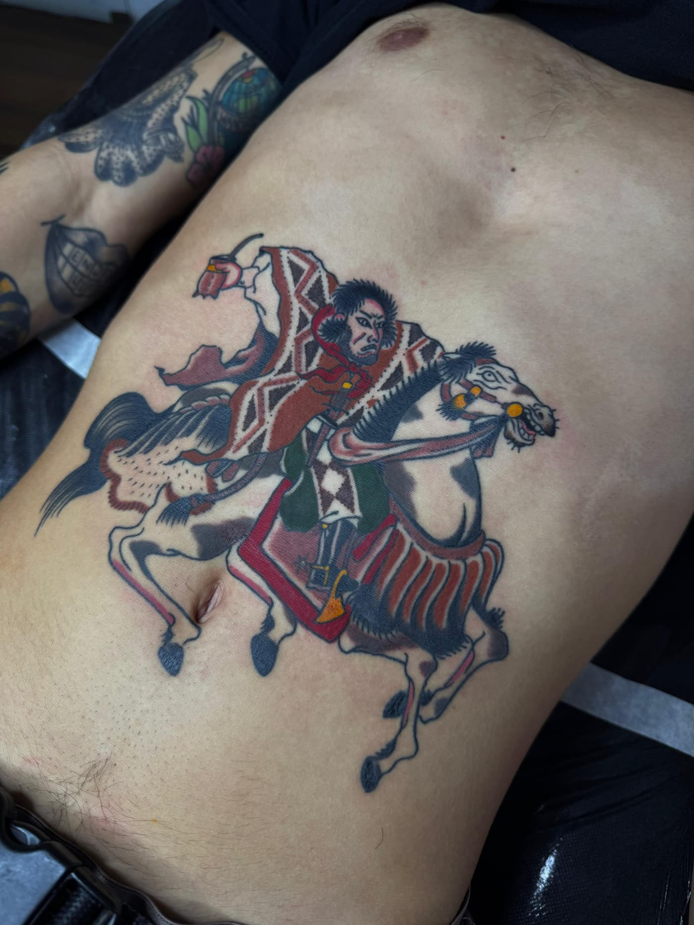 Bevorzugte Stile: Sein Stil umfasst Elemente des Realismus, der Illustrationskunst sowie abstrakte und grafische Designs, die eine moderne Ästhetik mit traditionellen Tattoo-Techniken kombinieren.
