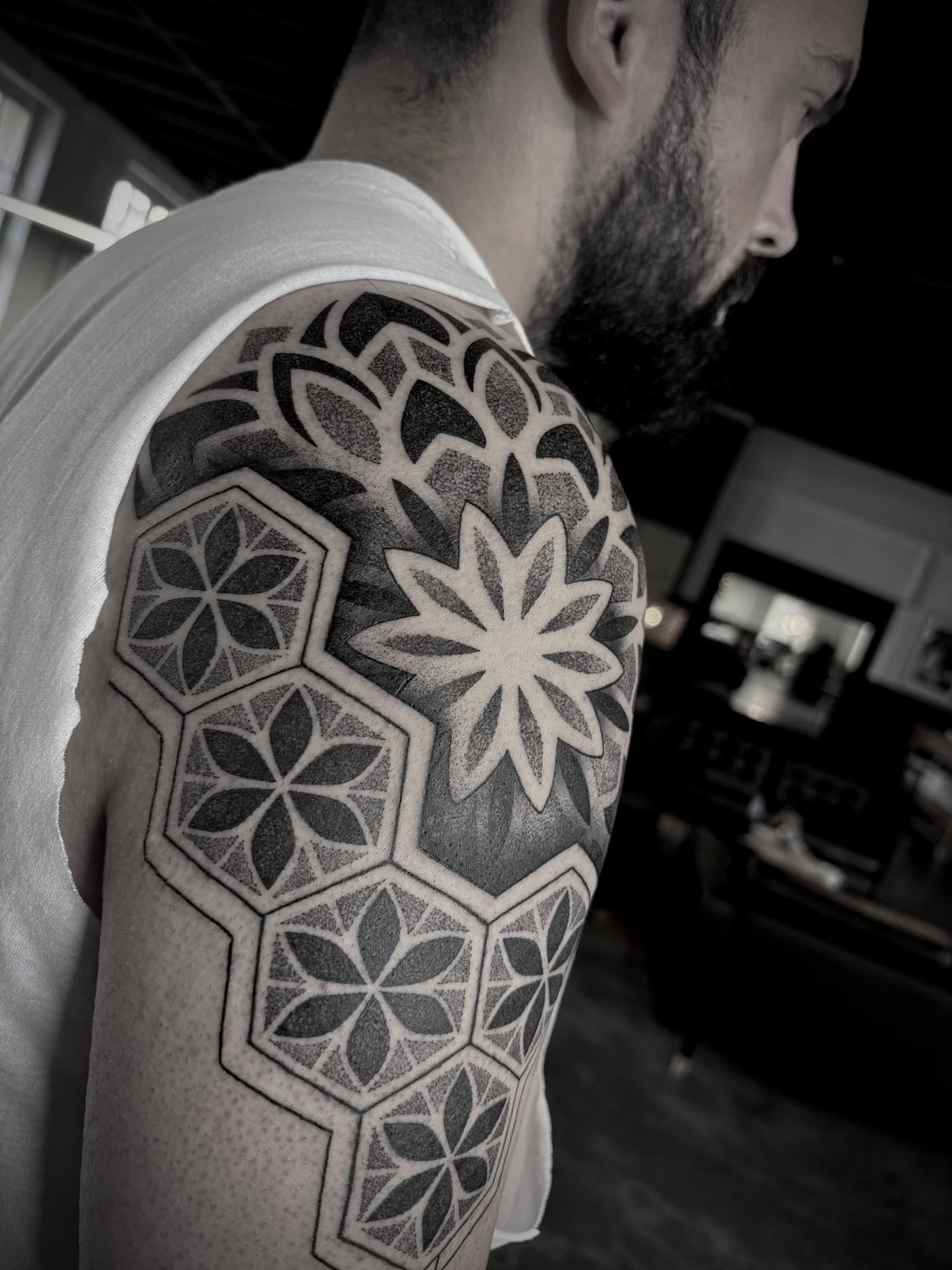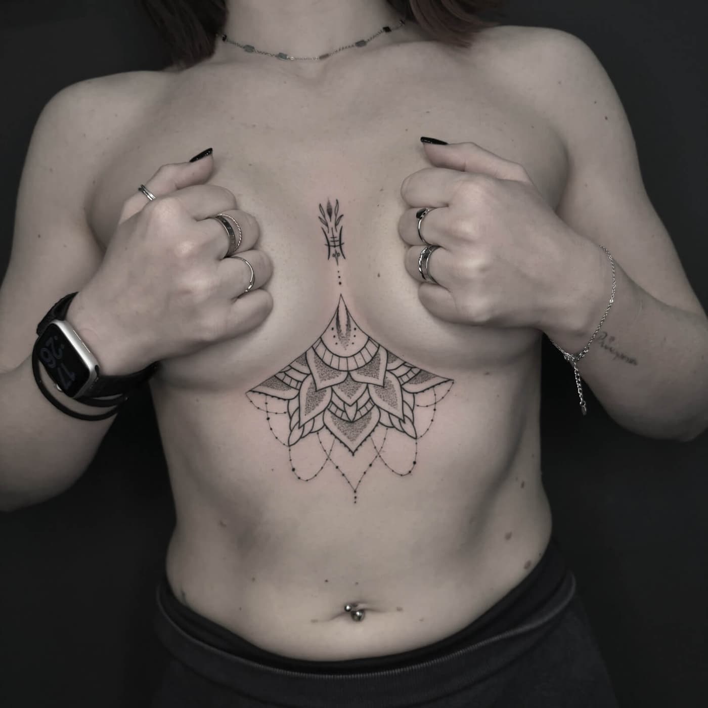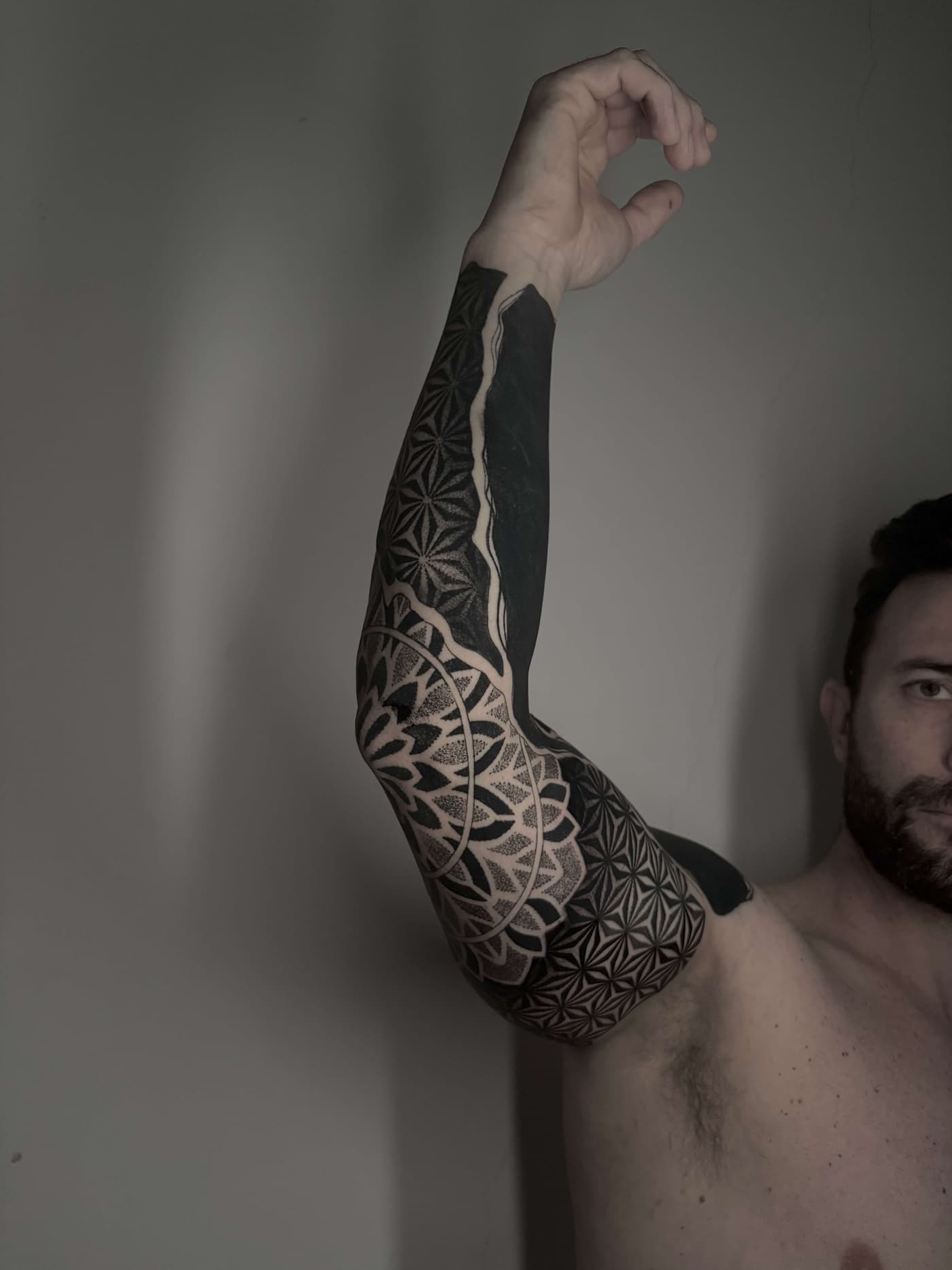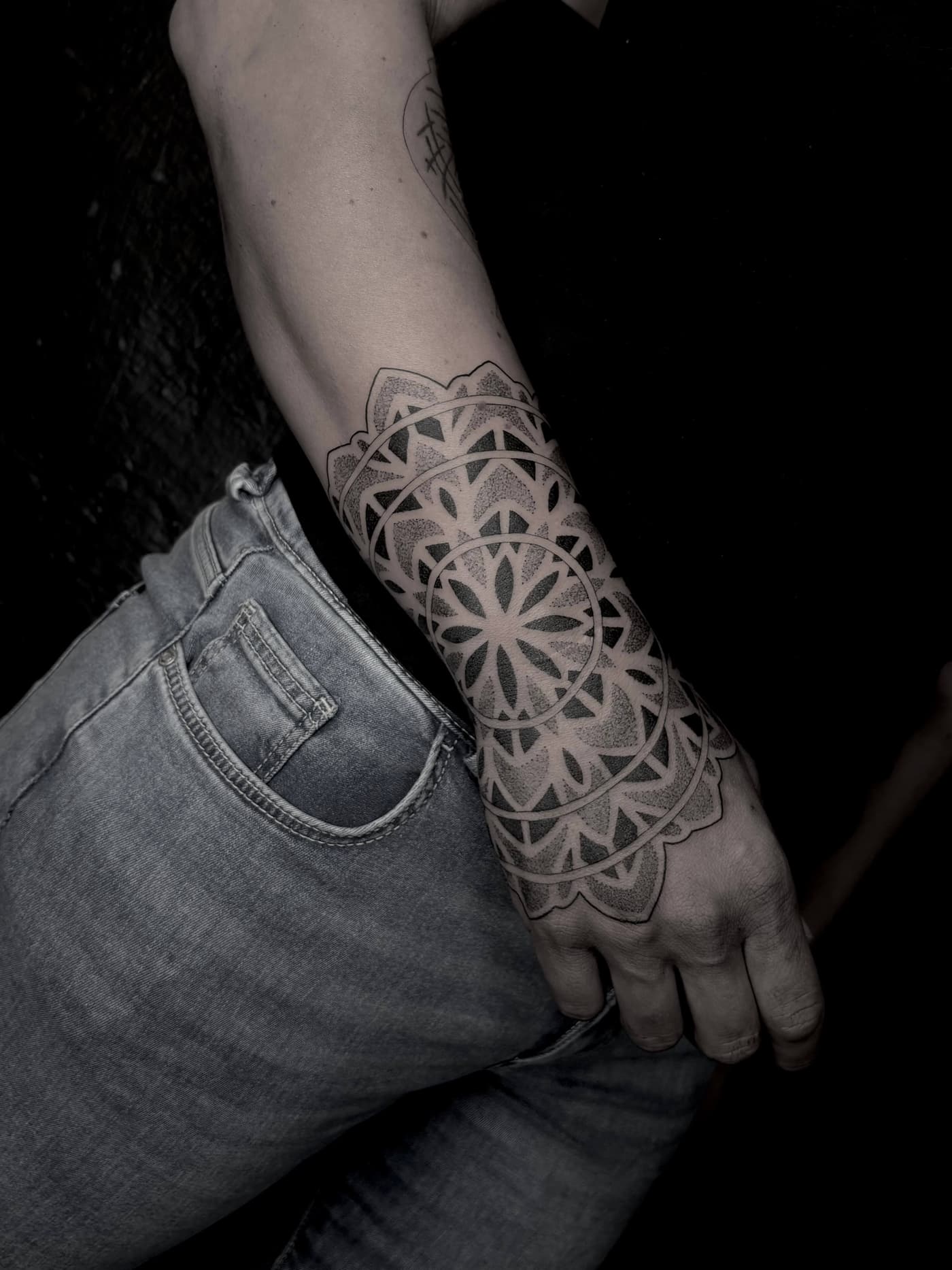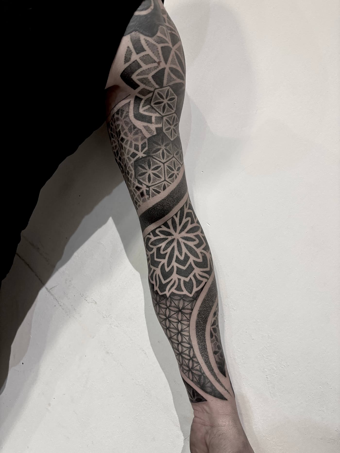 Davide transformiert anatomische Gegebenheiten in komplexe visuelle Erlebnisse, die durch tiefschwarze Sättigung und mathematische Präzision bestechen. Seine künstlerische Handschrift vereint die Wucht des Blackwork mit der filigranen Ästhetik ornamentaler Strukturen zu einem harmonischen Gesamtbild. Jedes Design wird dabei als fließende Erweiterung des Körpers begriffen und mit höchster technischer Sorgfalt umgesetzt.