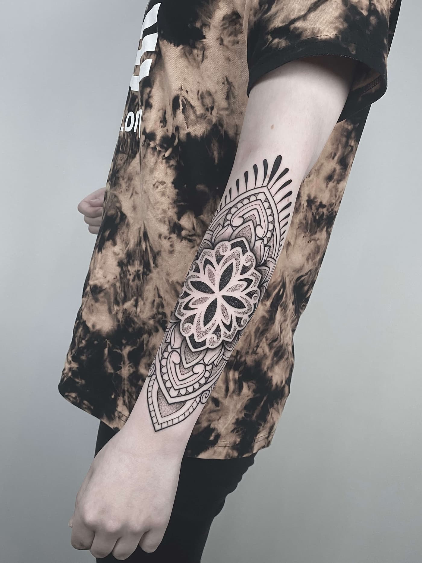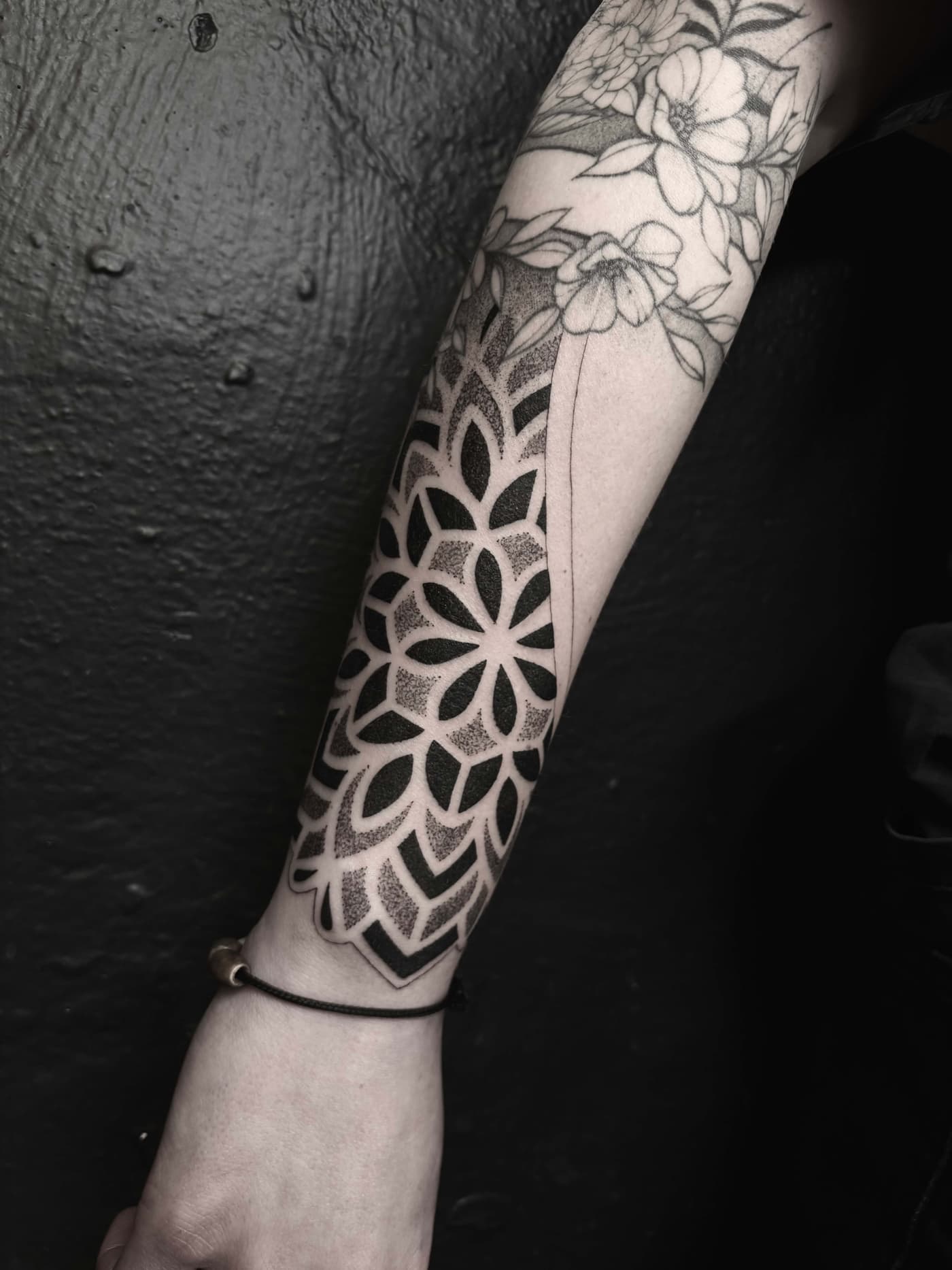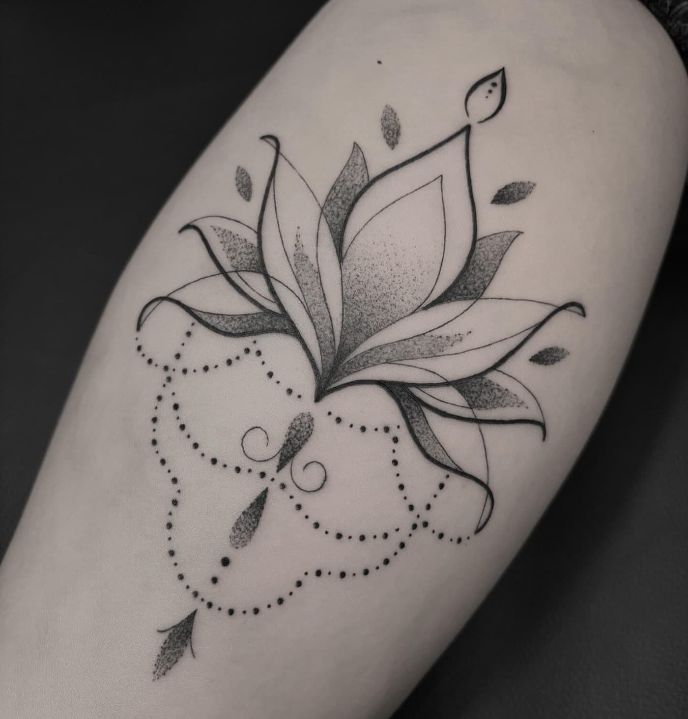 Die technische Exzellenz zeigt sich in absolut konstanten Linienführungen und weichen Dotwork-Gradienten, die den massiven schwarzen Flächen Tiefe verleihen. Durch den gezielten Einsatz von Kontrasten schafft er plastische Effekte, die selbst nach Jahren eine hohe Brillanz und klare Kantenstabilität aufweisen. Jeder Nadelstich folgt dabei dem Ziel, maximale Haltbarkeit bei minimaler Hautbelastung zu erreichen.
