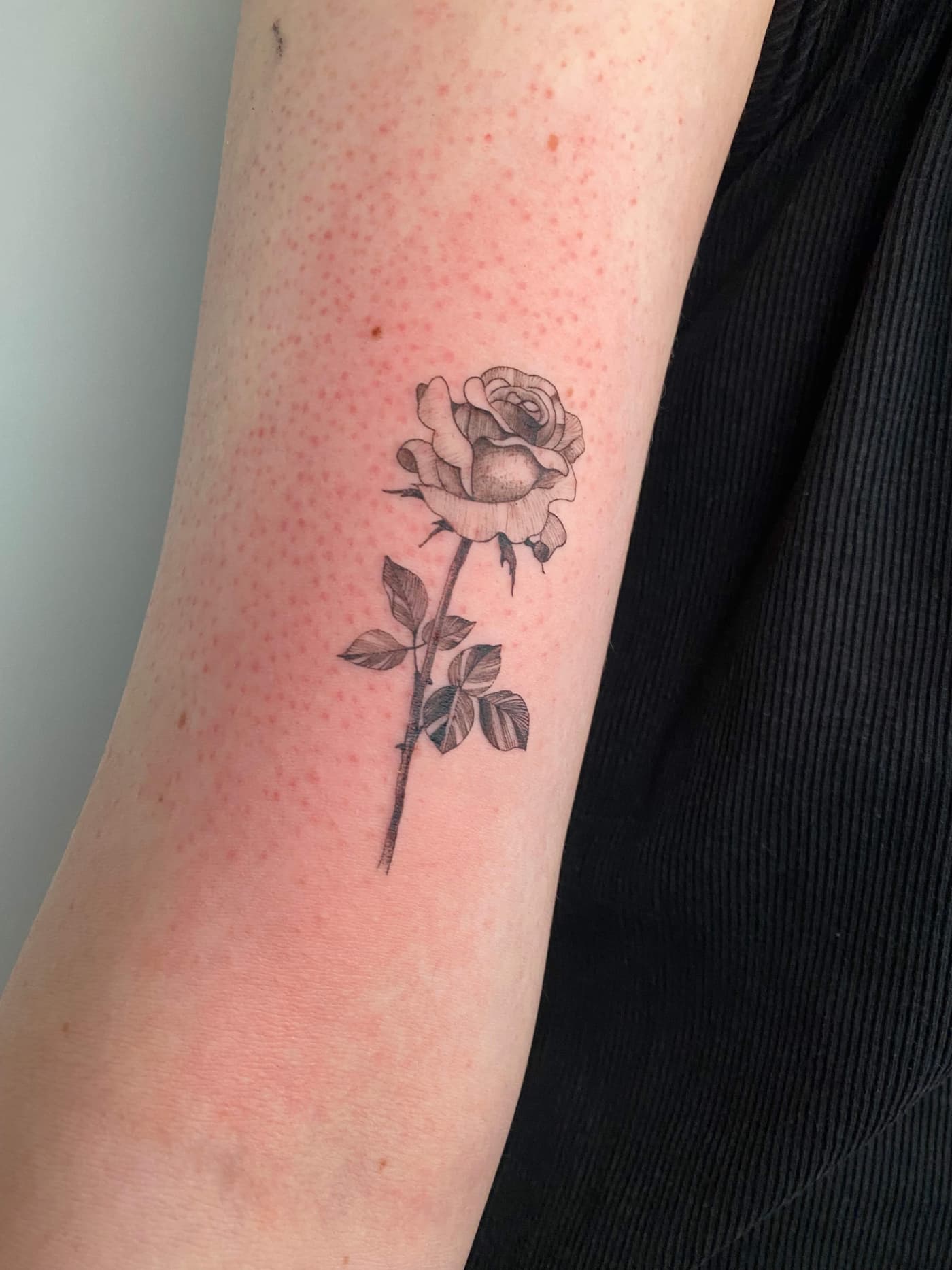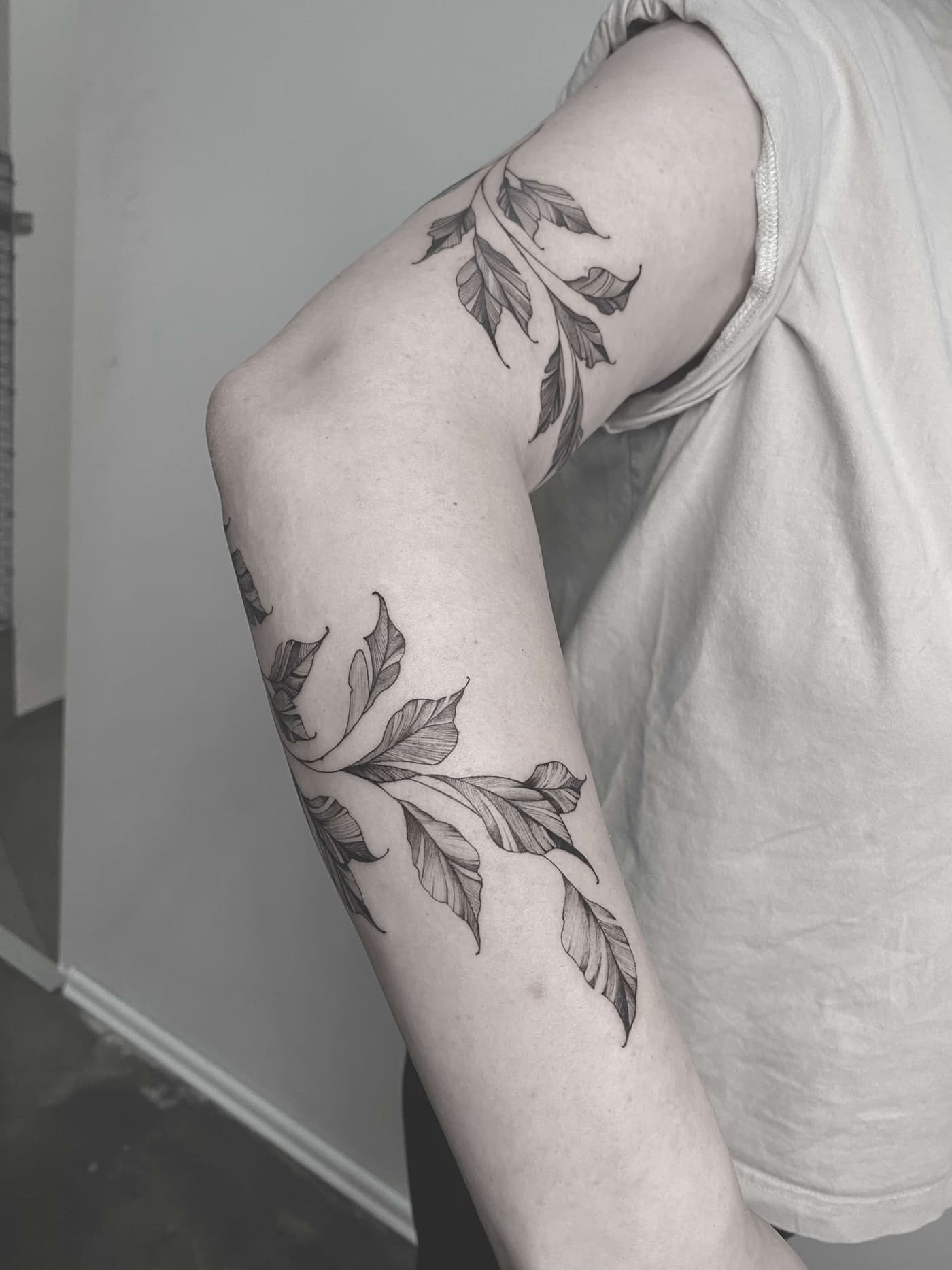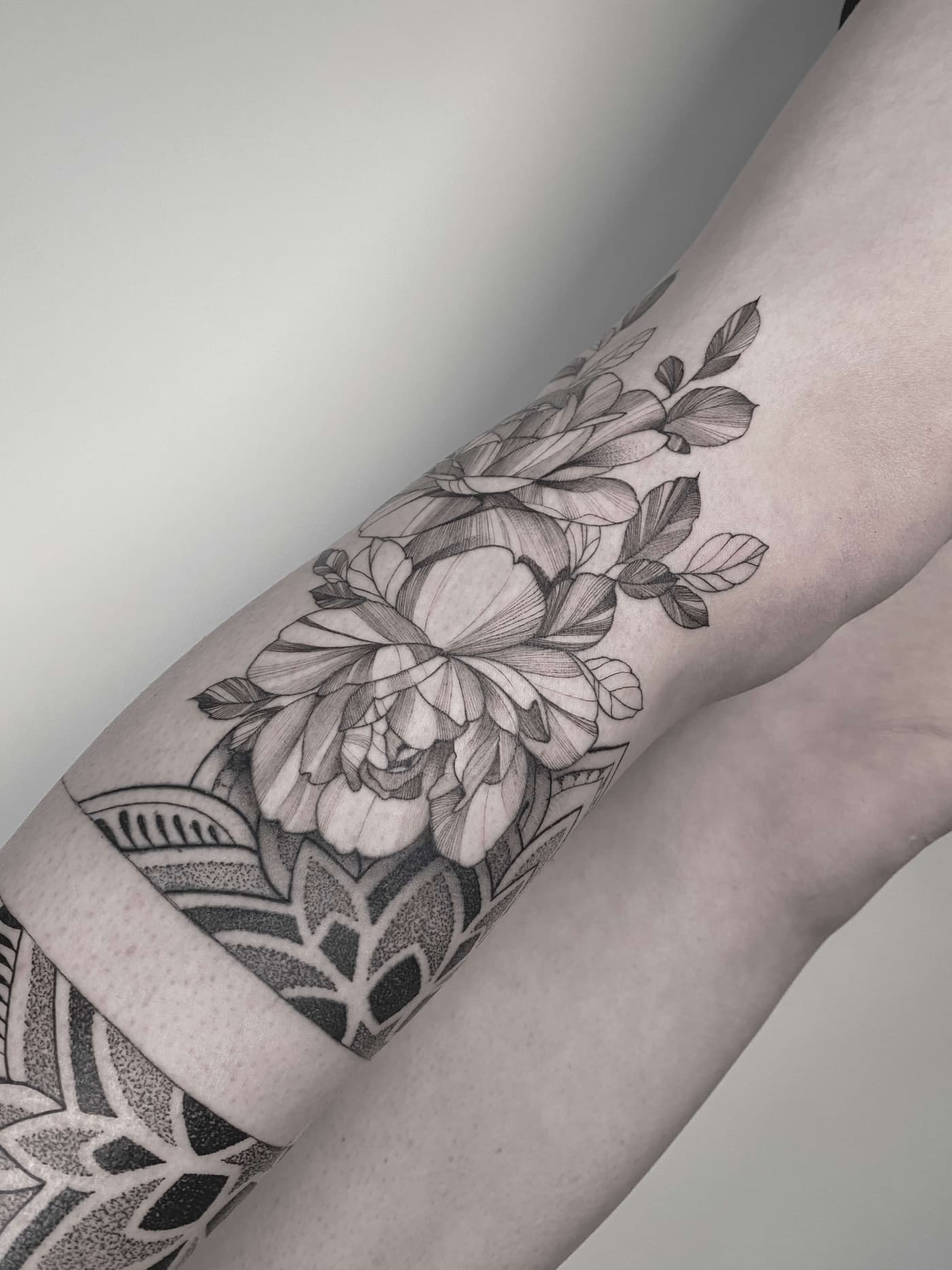 Die technische Exzellenz zeigt sich in absolut konstanten Linienführungen und weichen Dotwork-Gradienten, die den massiven schwarzen Flächen Tiefe verleihen. Durch den gezielten Einsatz von Kontrasten schafft er plastische Effekte, die selbst nach Jahren eine hohe Brillanz und klare Kantenstabilität aufweisen. Jeder Nadelstich folgt dabei dem Ziel, maximale Haltbarkeit bei minimaler Hautbelastung zu erreichen.