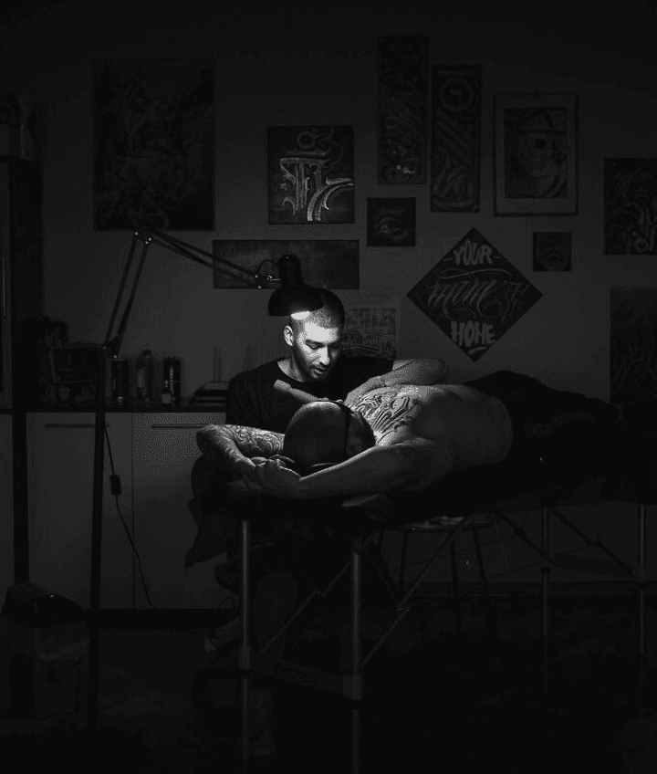 Entdecke die außergewöhnlichen Tattoos von Dimi und erfahre mehr über seine Arbeitsweise. In einem persönlichen Gespräch helfen wir dir, deine Tattoo-Vision in ein einzigartiges Kunstwerk zu verwandeln.