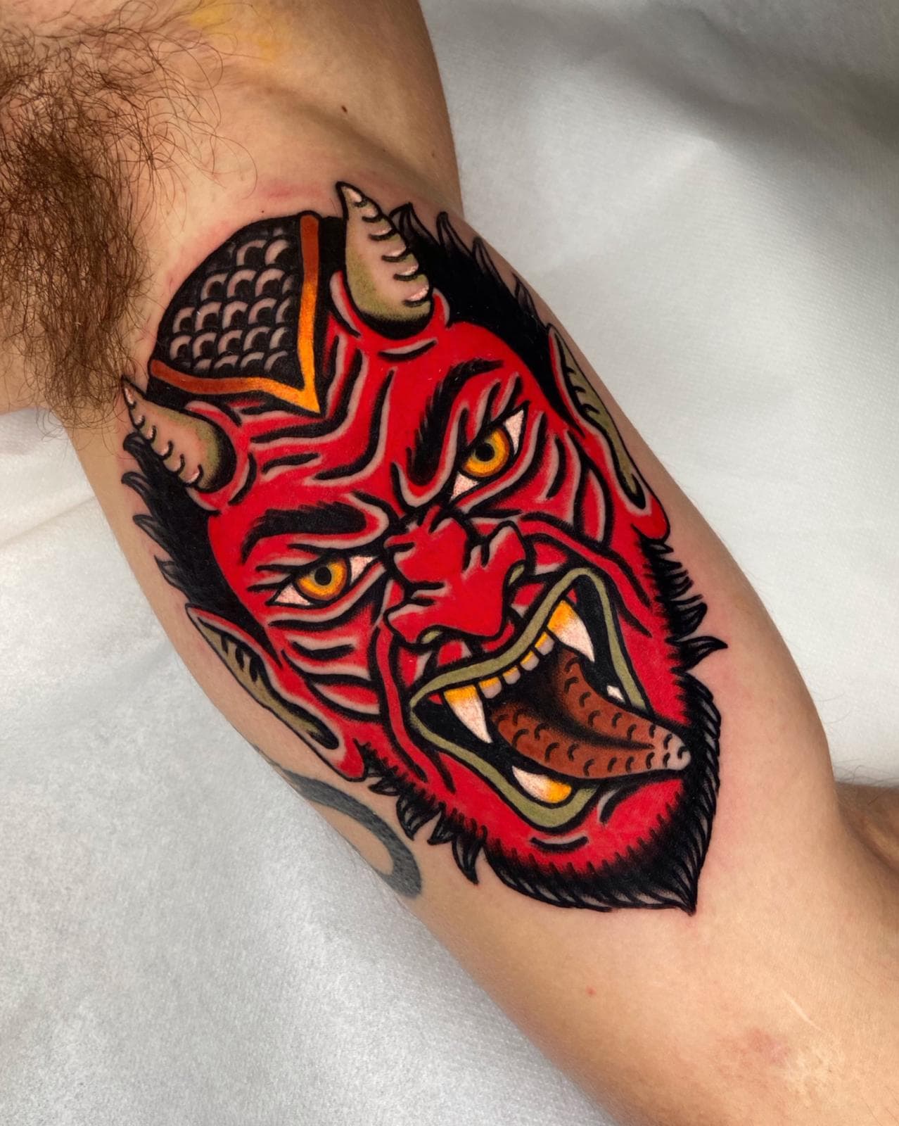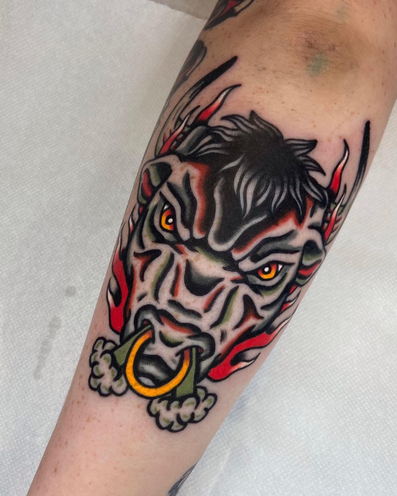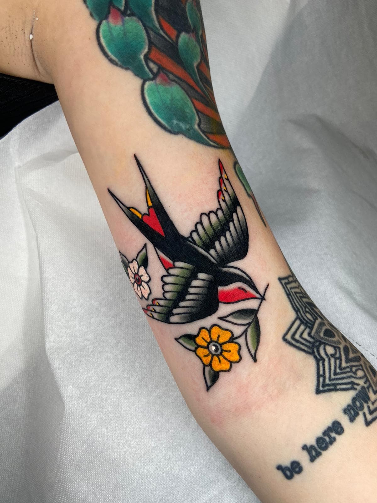 Seine Arbeitsweise zeichnet sich durch eine exzellente Linienführung aus, die sowohl in den kräftigen Outlines seiner klassischen Motive als auch in den zarten Details der Fineline-Arbeiten überzeugt. Durch präzises Schattieren und eine fundierte Farbsetzung entstehen Kontraste, die nicht nur unmittelbar nach dem Stechen wirken, sondern auch eine hervorragende Haltbarkeit garantieren. Diese technische Souveränität sorgt für saubere Übergänge und eine ästhetische Tiefe in jedem einzelnen Tattoo.