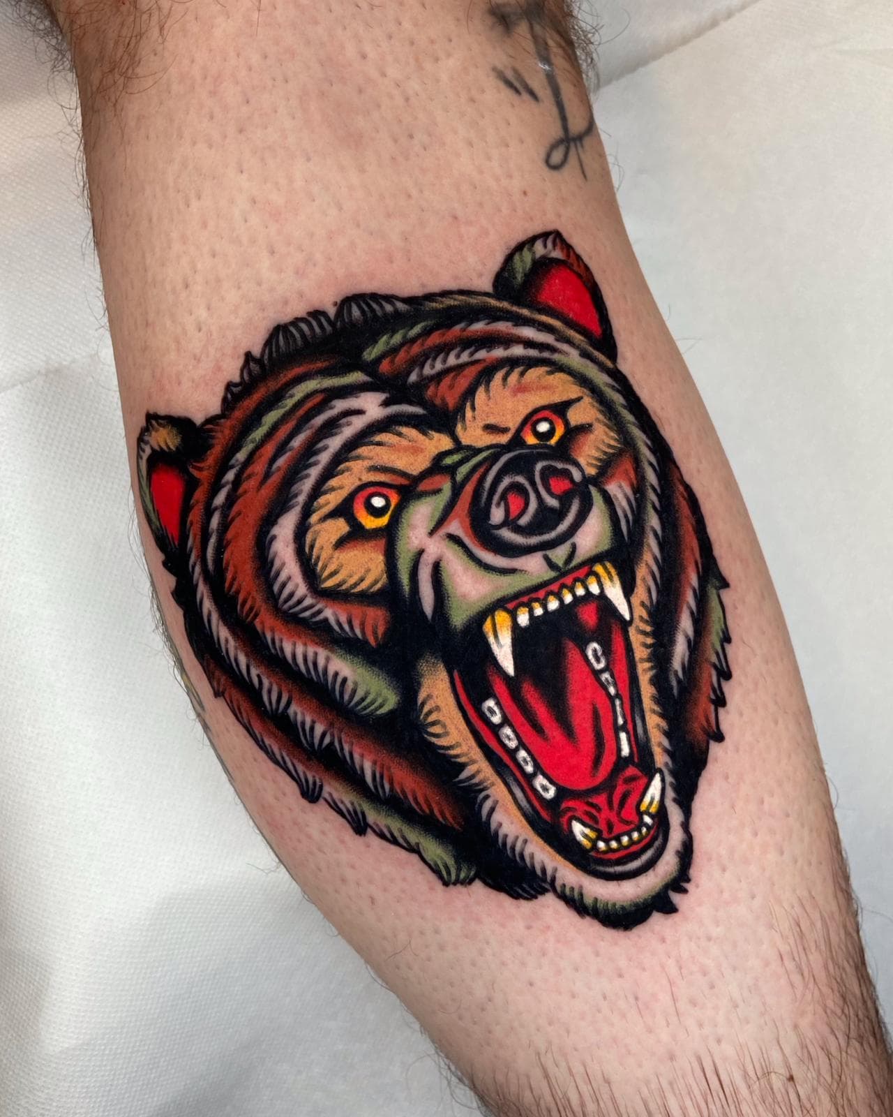Sein Schwerpunkt liegt auf detailreichen Neo-Traditional-Motiven, die durch eine lebendige Dynamik und ausdrucksstarke Kompositionen bestechen. Ergänzend dazu integriert er nahtlos filigrane, ornamentale Muster und Linienarbeiten, die dem Körper eine elegante Struktur verleihen.