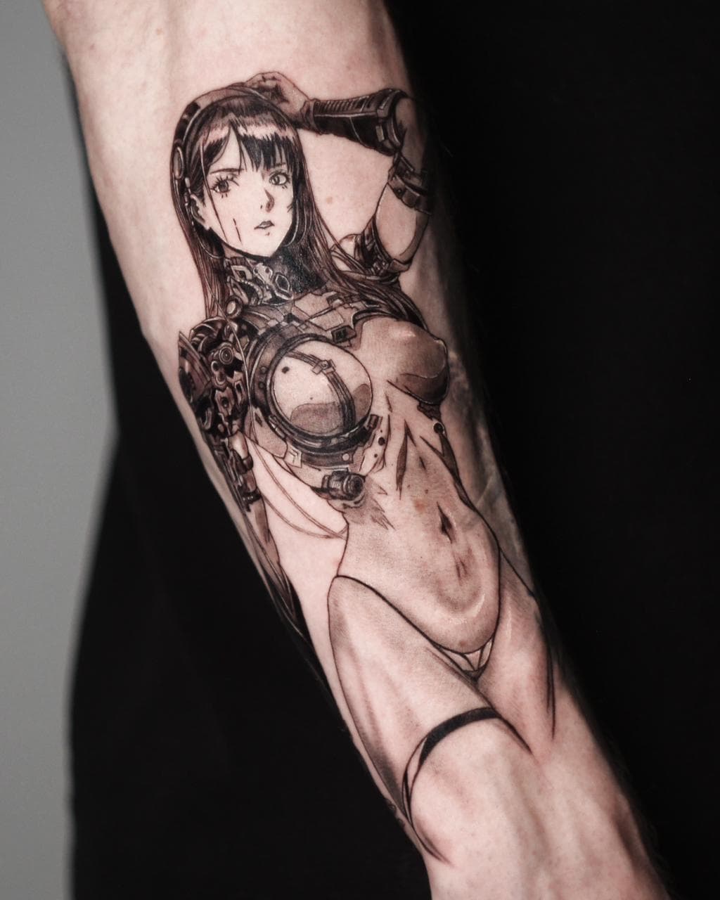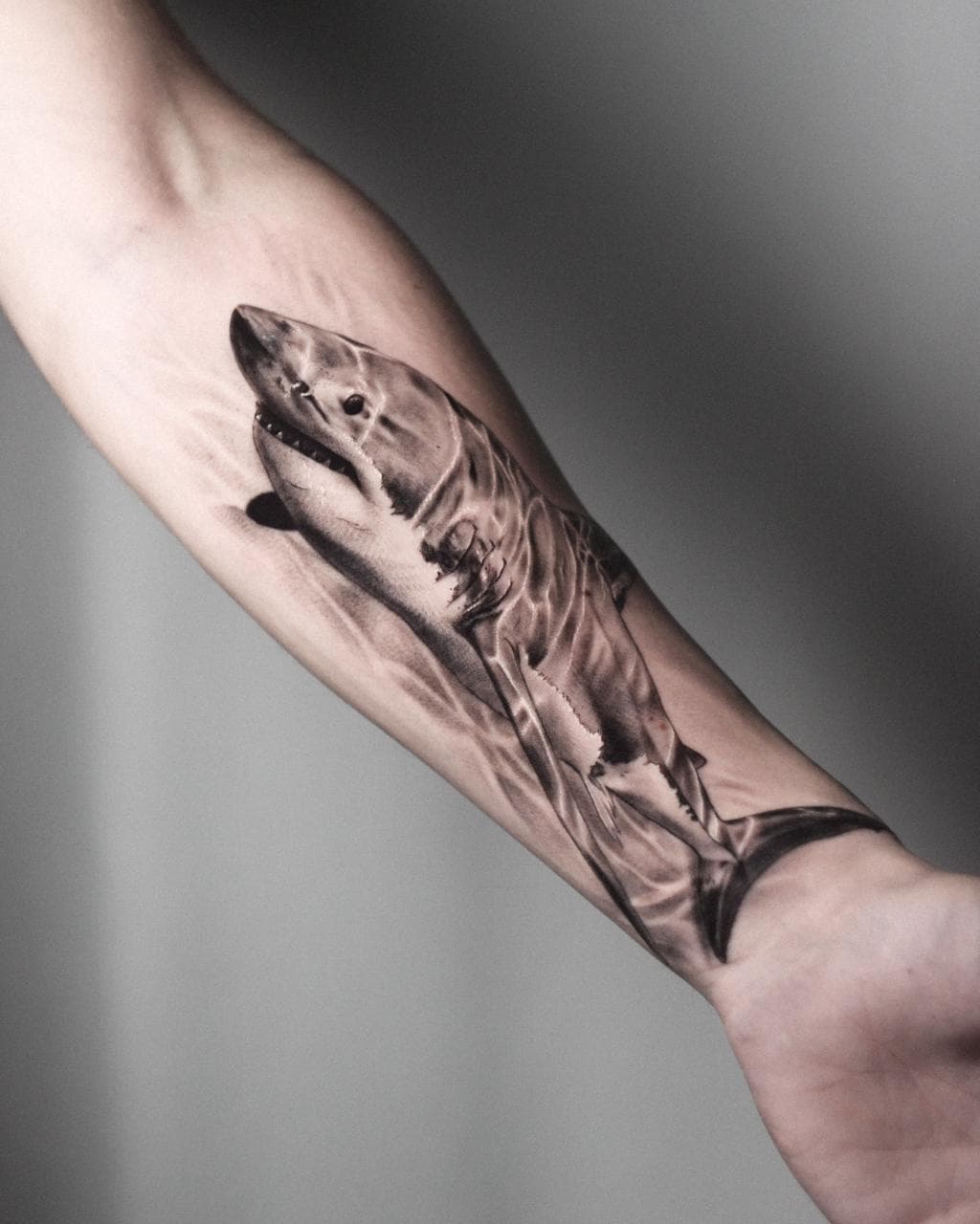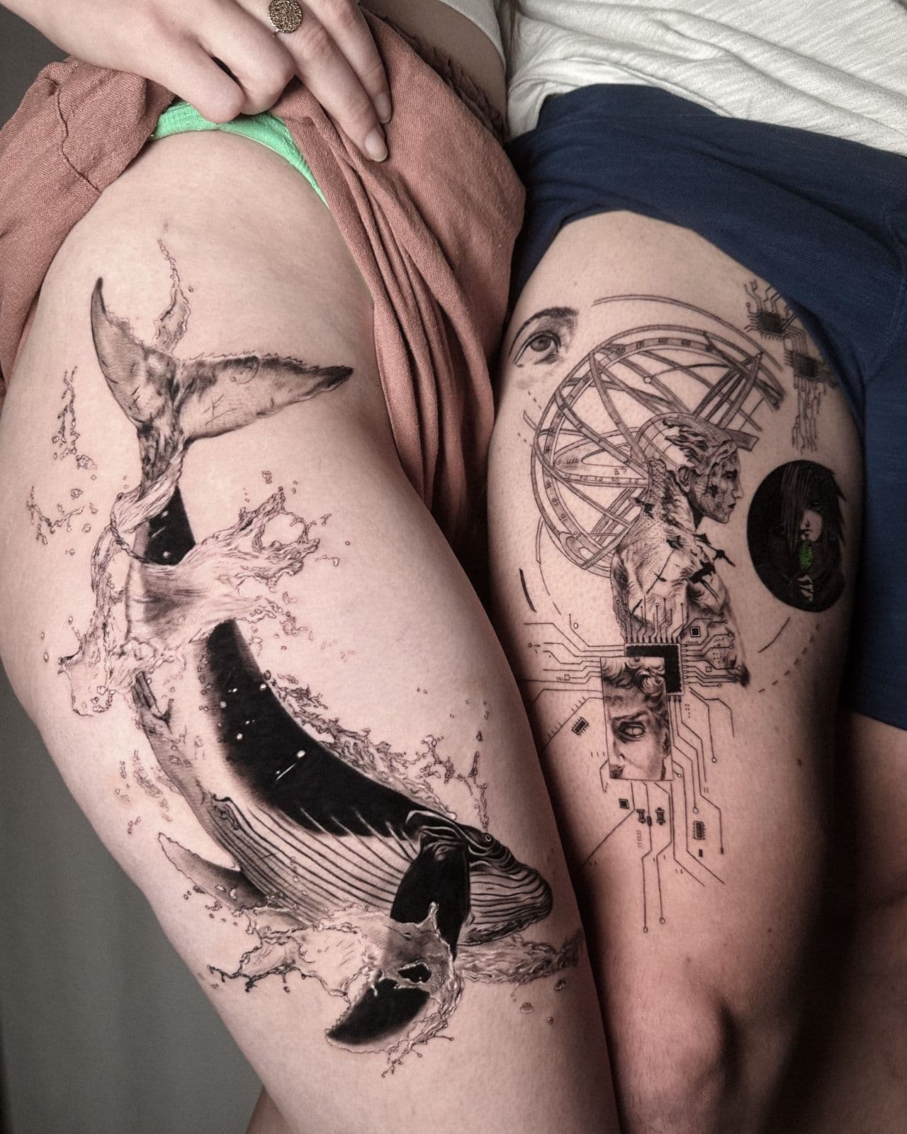 Meisterhafte Techniken: Giorgi beeindruckt mit einer außergewöhnlichen Präzision und feinen Linienführung, die seinen monochromen Tattoos eine klare und elegante Ästhetik verleiht.
