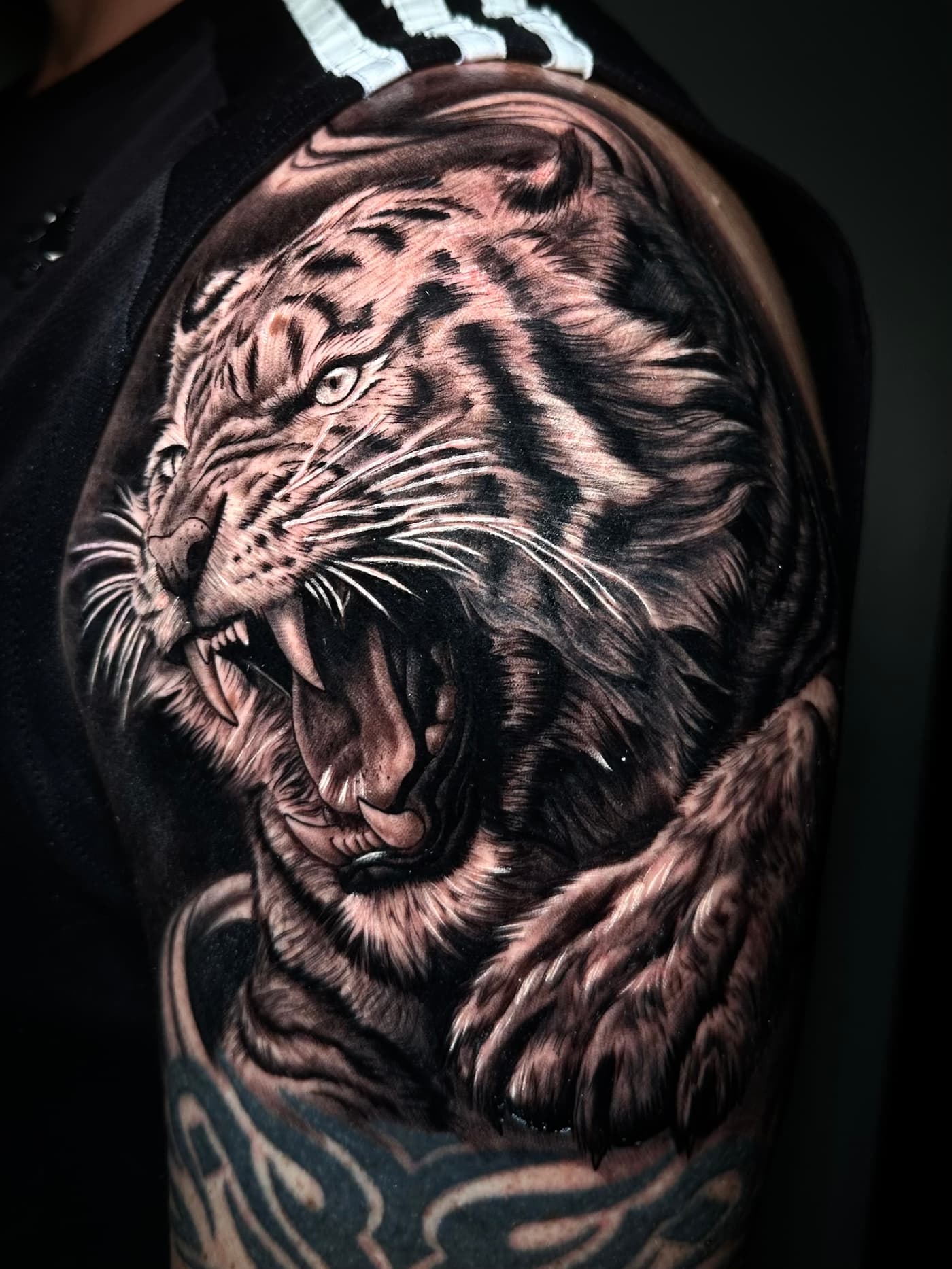 Der Entwurfsprozess beginnt mit der Analyse der Körperstellen, um sicherzustellen, dass die fließenden Übergänge des Designs die natürliche Muskulatur perfekt betonen. Jedes Detail wird exklusiv für Dich kreiert, wobei letzte Feinheiten und Anpassungen vertrauensvoll direkt im Studio vor dem Stechen besprochen werden können.