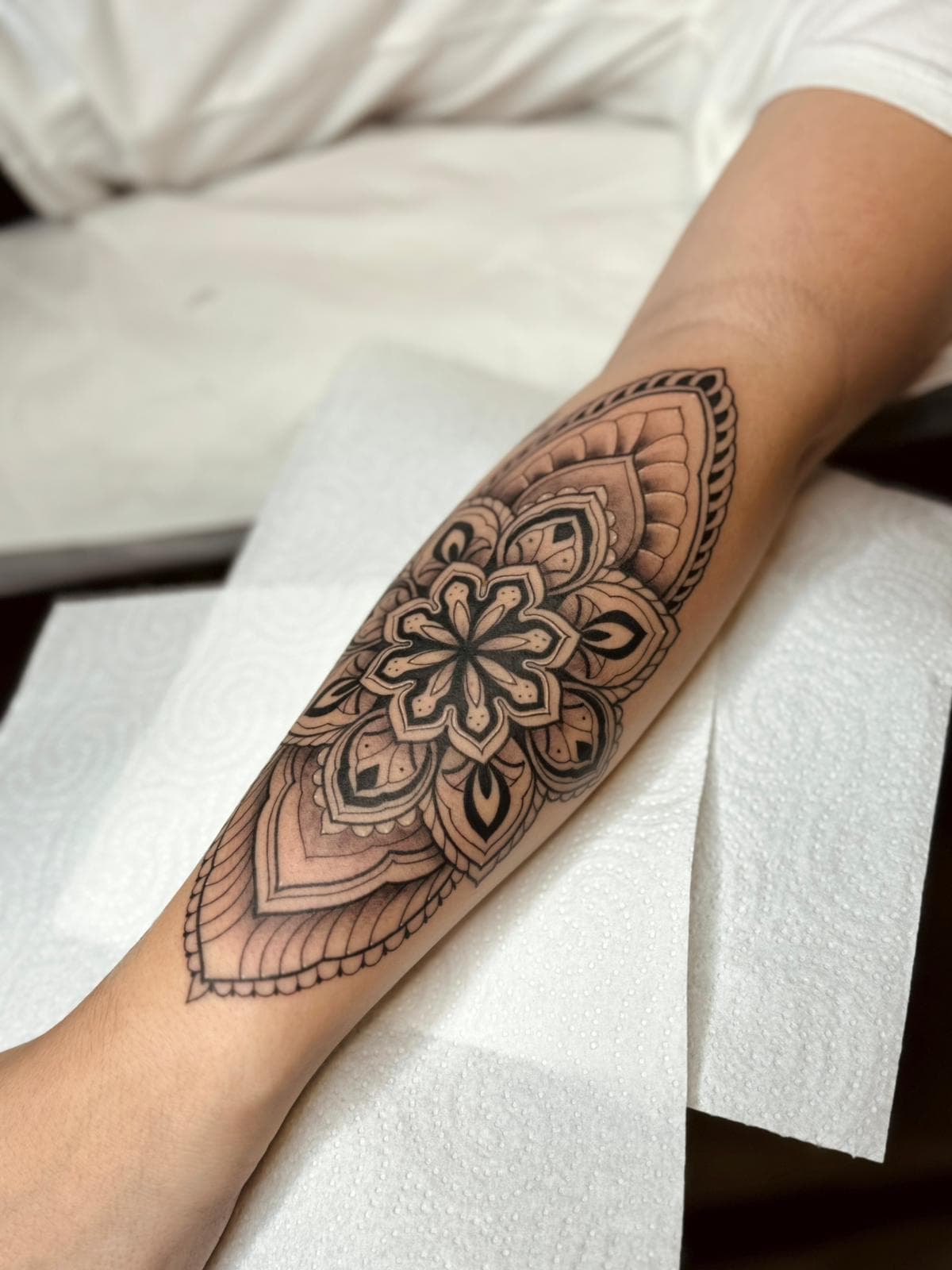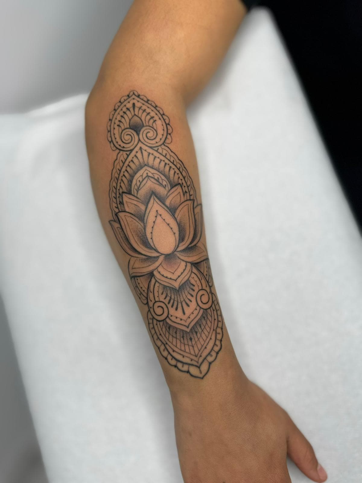 Willkommen auf der Detailseite von Julia – Ihre Tattoos zeichnen sich durch eine präzise Linienführung und feine Punktarbeiten aus, die jedem Motiv eine elegante und detailreiche Wirkung verleihen.