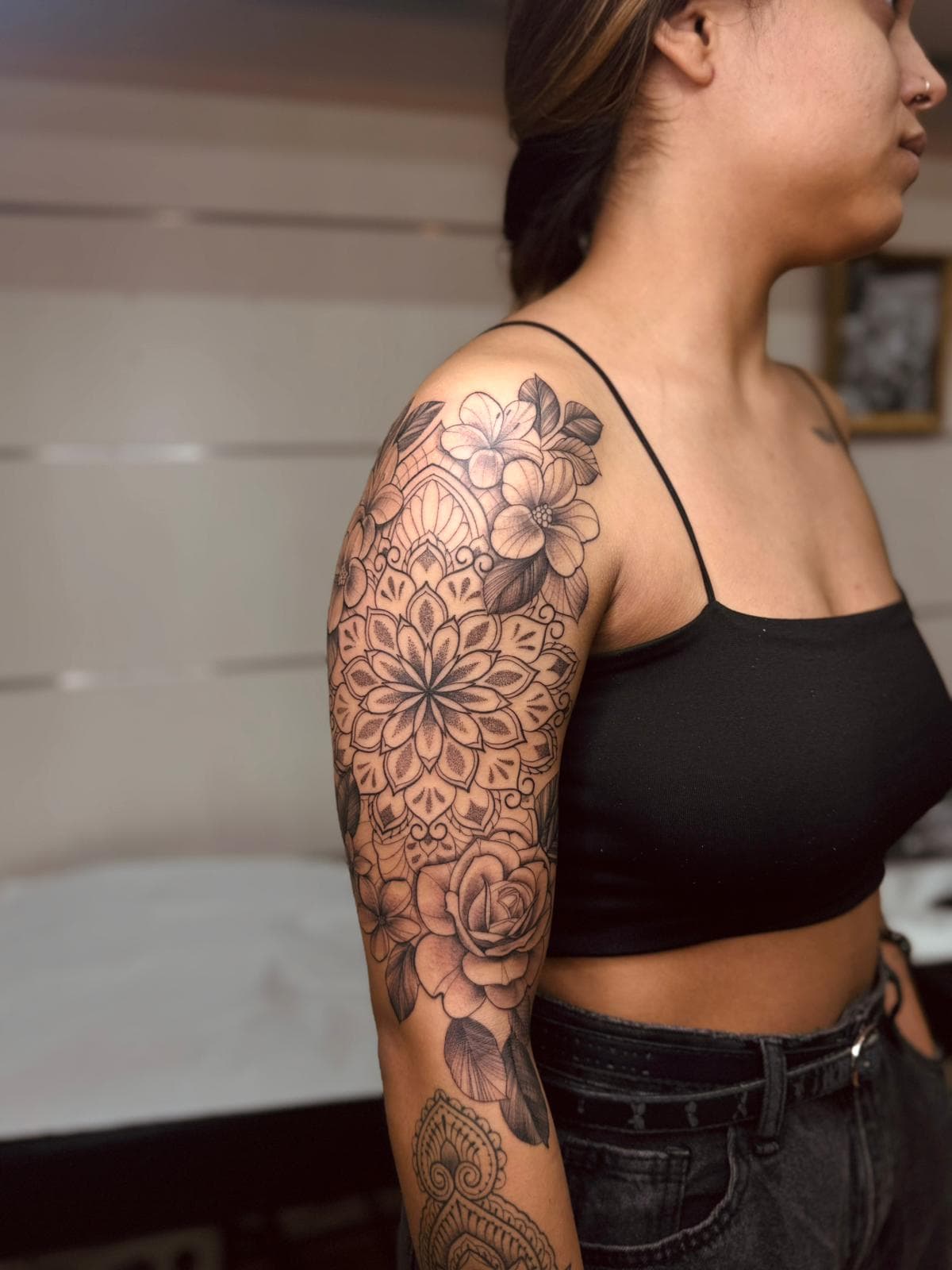 Bevorzugte Stile: Feine Linien und Motive, bei denen sie ihrer Kreativität freien Lauf lassen kann.