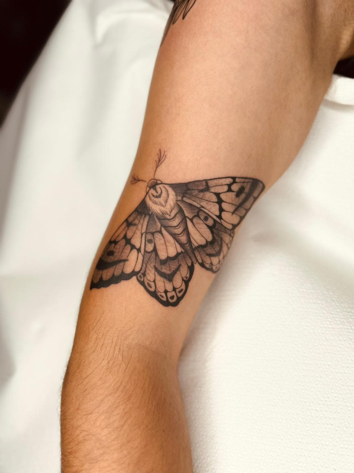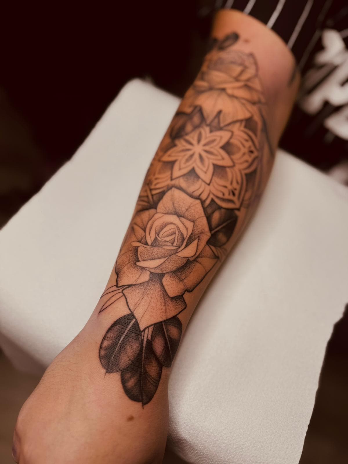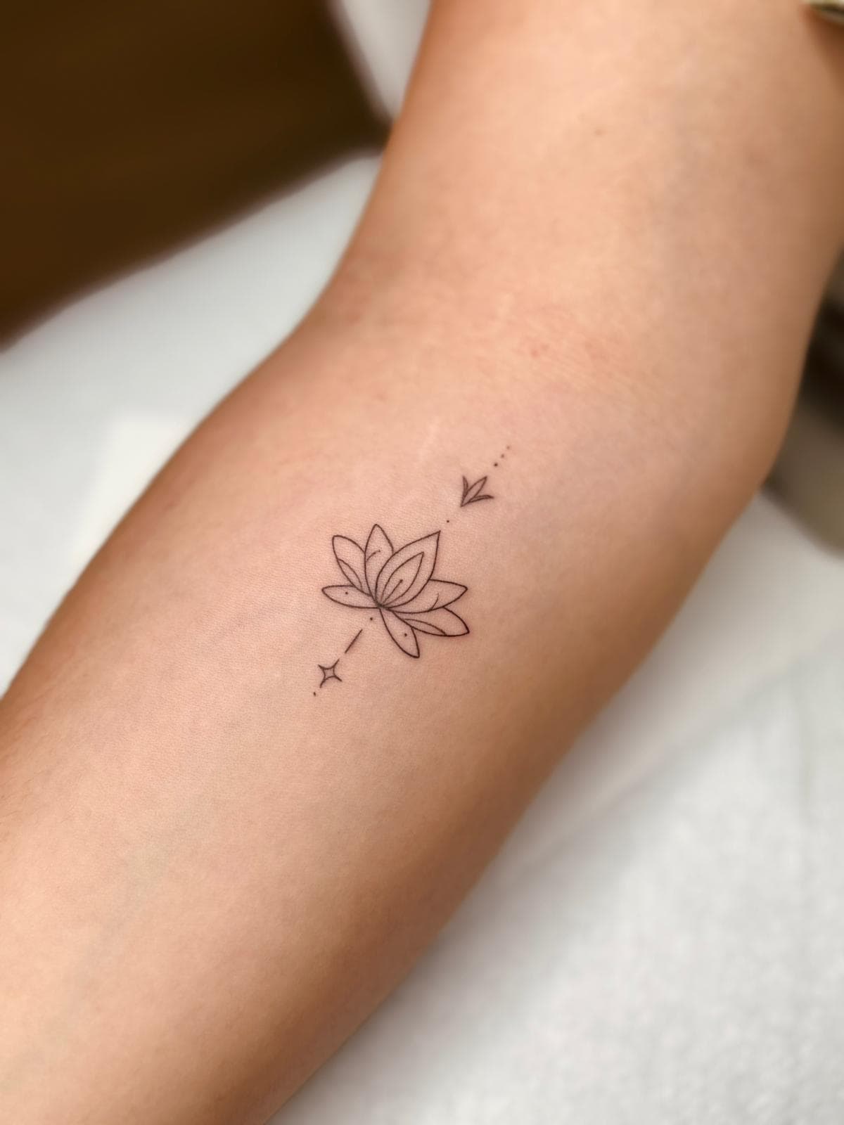 Willkommen auf der Detailseite von Julia – Ihre Tattoos zeichnen sich durch eine präzise Linienführung und feine Punktarbeiten aus, die jedem Motiv eine elegante und detailreiche Wirkung verleihen.