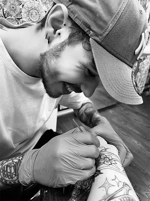 Bevorzugte Motive: Leonardo liebt es, klassische Old School Motive wie Anker, Schwalben, Dolche und Rosen zu tätowieren. Seine Designs sind zeitlos und ausdrucksstark, ideal für Liebhaber des authentischen, traditionellen Tattoo-Stils.