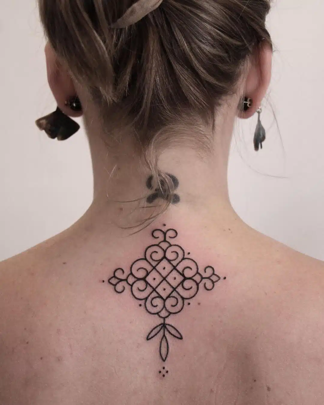 Willkommen auf der Detailseite von Lula – Ihre Arbeiten zeichnen sich durch filigrane, elegante Muster aus, die jedem Tattoo eine besondere Tiefe und Bedeutung verleihen.