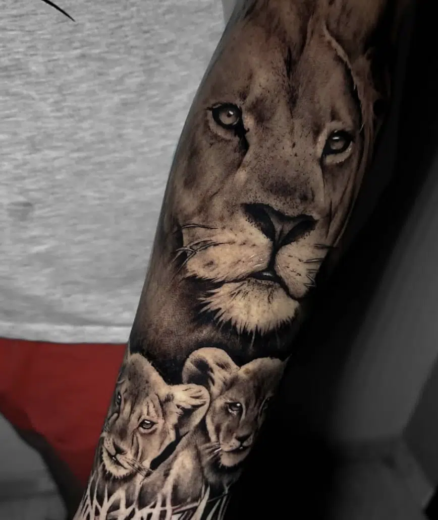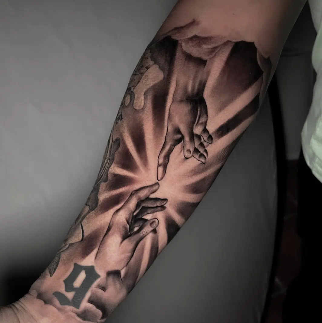 Meisterhafte Techniken: Manuel demonstriert eine außergewöhnliche Beherrschung der Techniken des Realismus und der Schattierung, wodurch seine Tattoos eine beeindruckende Tiefe und Detailgenauigkeit erreichen, die den Betrachter fesseln.