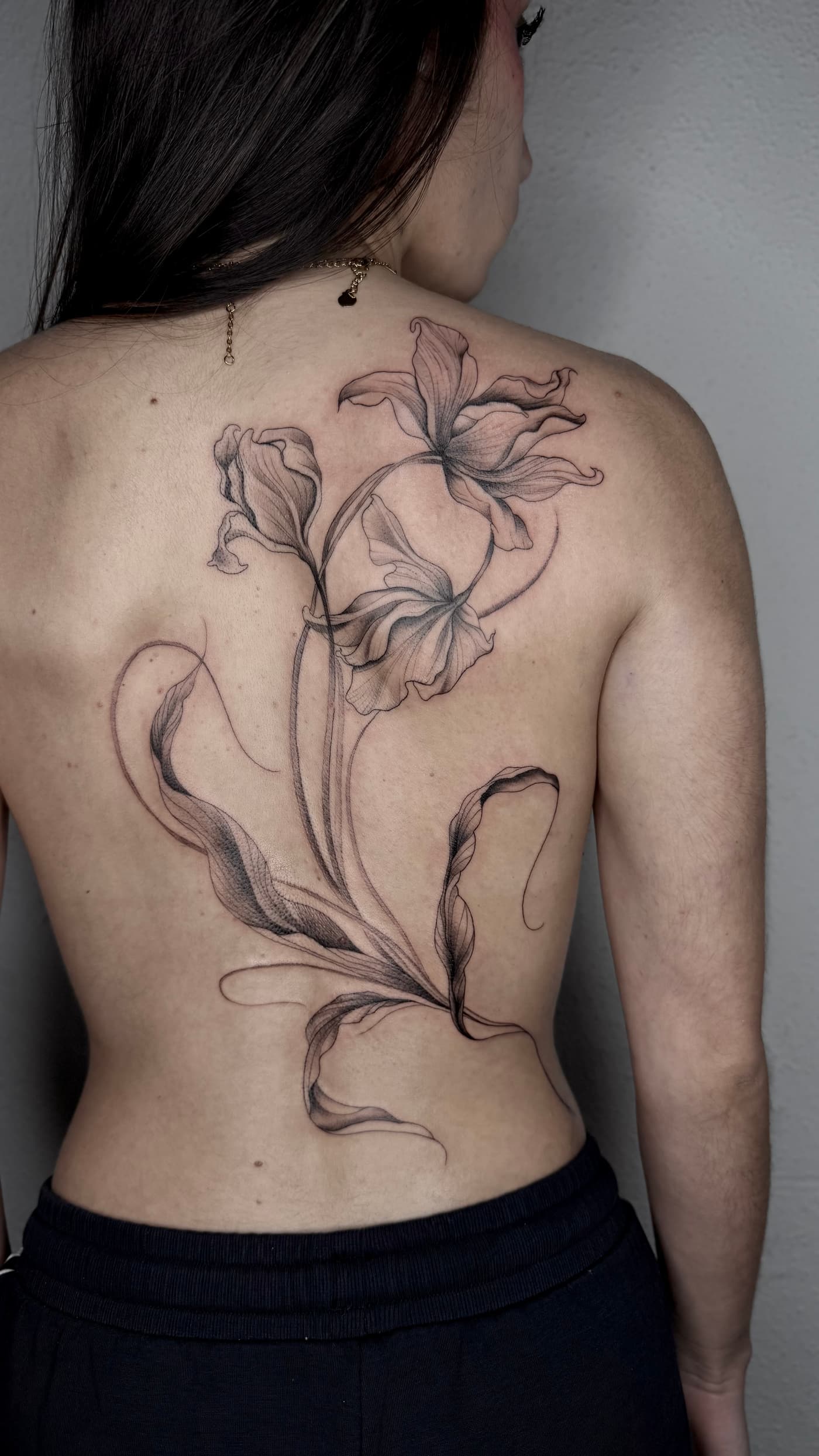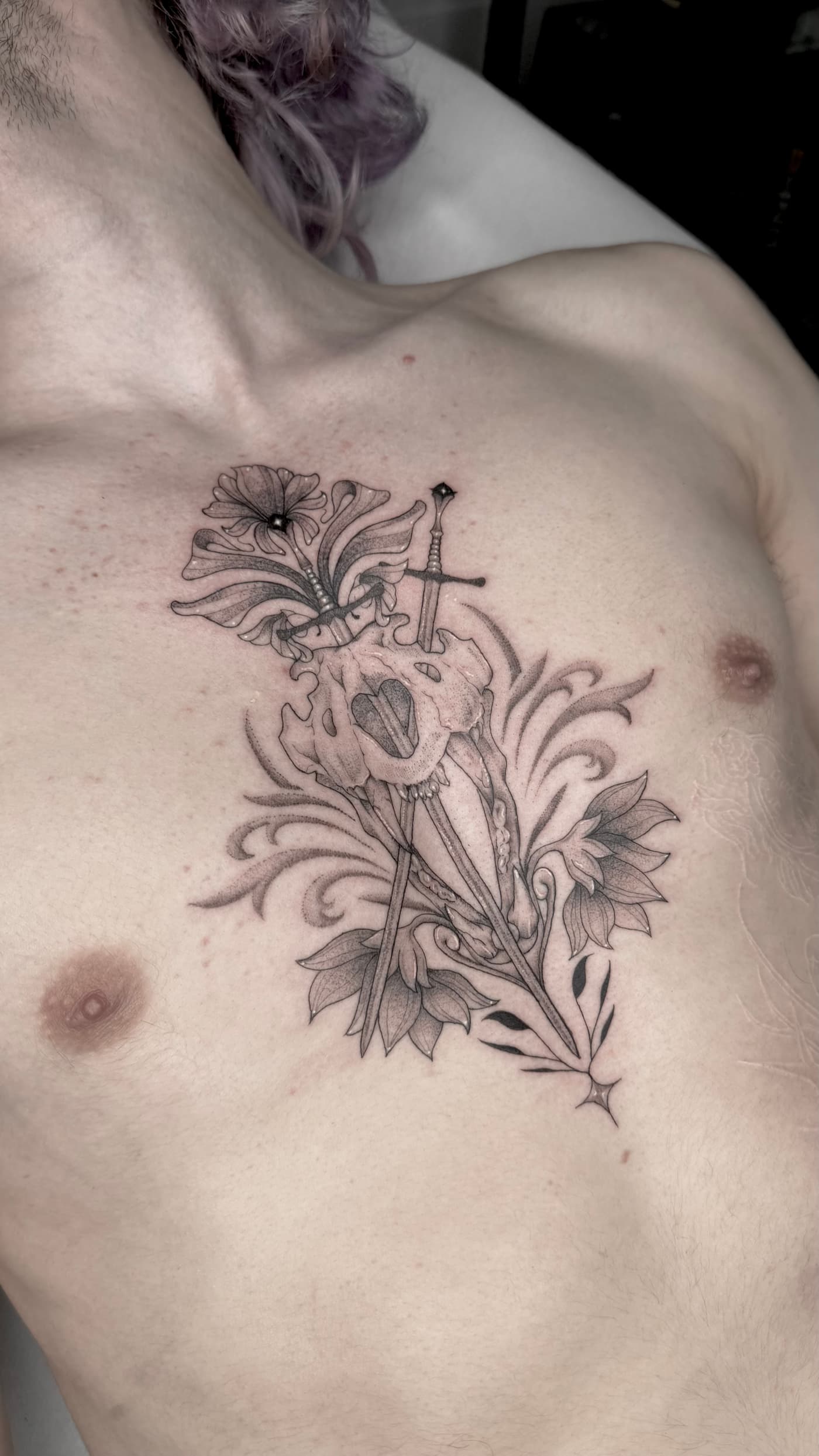 Jedes Motiv wird unter Berücksichtigung der individuellen Anatomie entworfen, damit die Komposition fließend mit den Bewegungen des Körpers interagiert. Während des Termins im Studio verfeinern wir die Details und passen die Proportionen exakt an eure Vorstellungen und die spezifische Platzierung an. Der kreative Prozess bleibt dabei stets ein Dialog, der sicherstellt, dass das Design perfekt zu eurer Persönlichkeit passt.