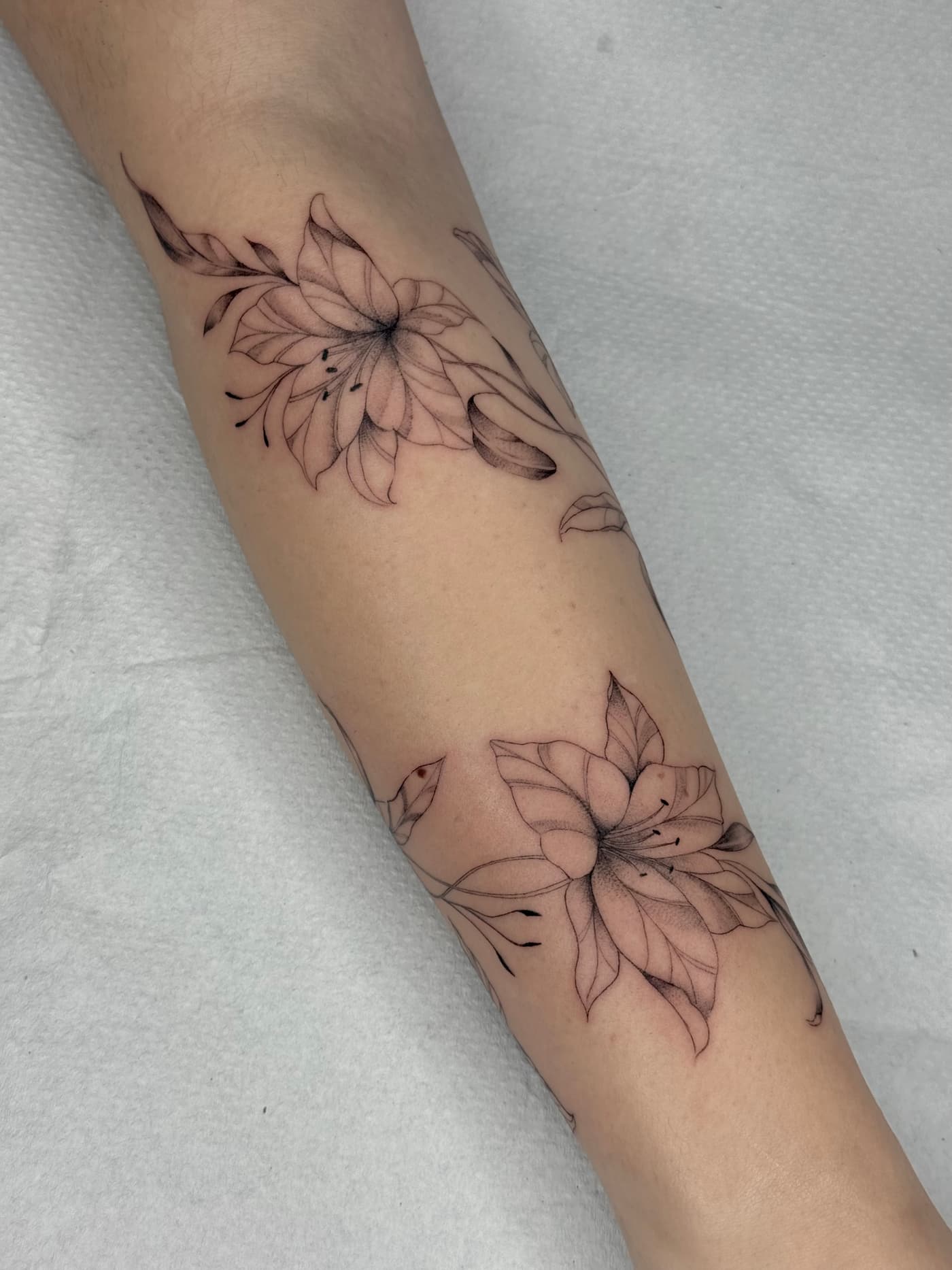 Ihr Fokus liegt auf anspruchsvollen botanischen Fineline-Tattoos sowie ausdrucksstarken Anime-Motiven und Tierporträts im B&G Realistic Stil. Besonders häufig realisiert sie filigrane Symbole und detailverliebte Micro-Designs, die trotz ihrer geringen Größe durch eine enorme Plastizität überzeugen.