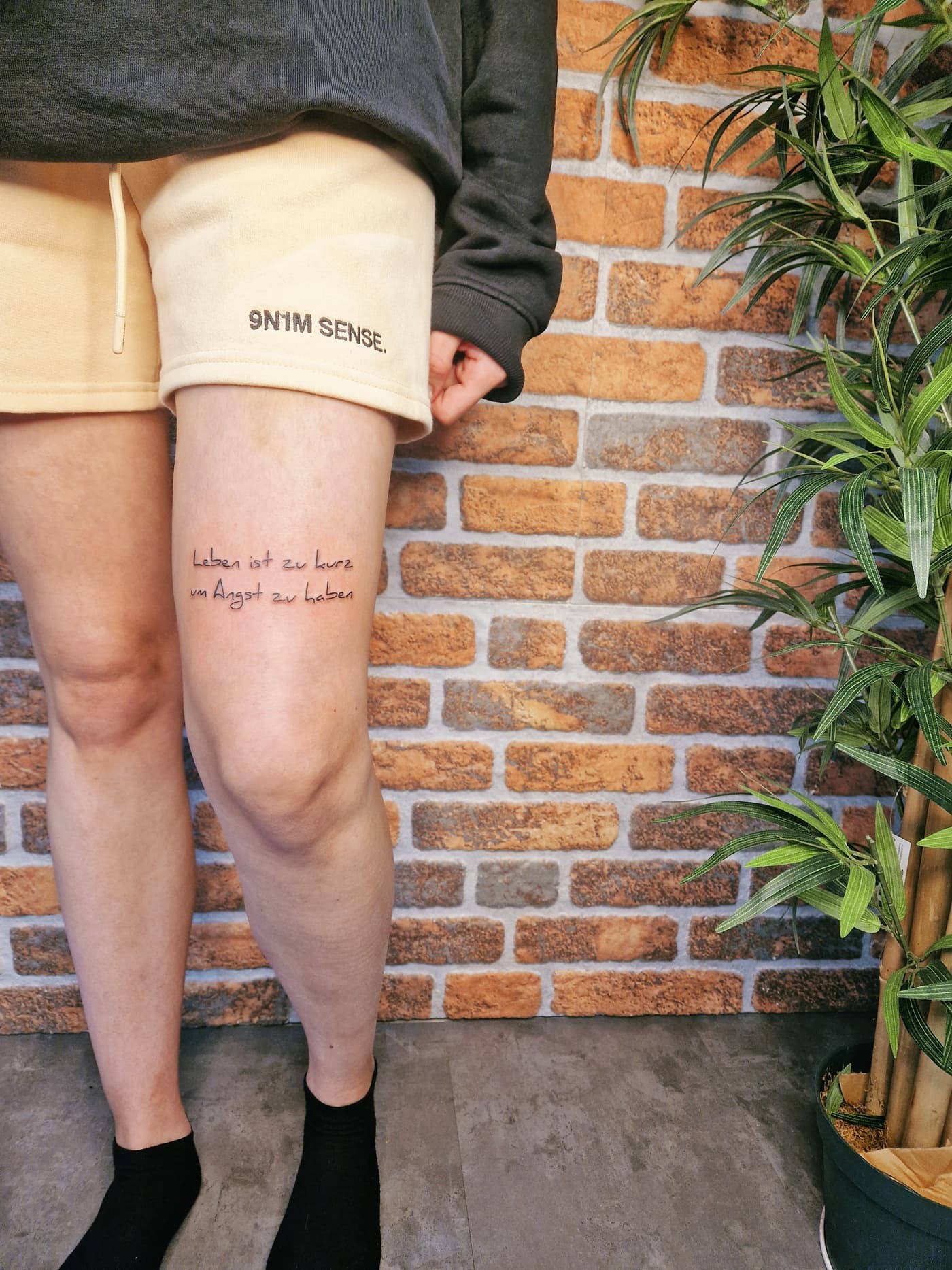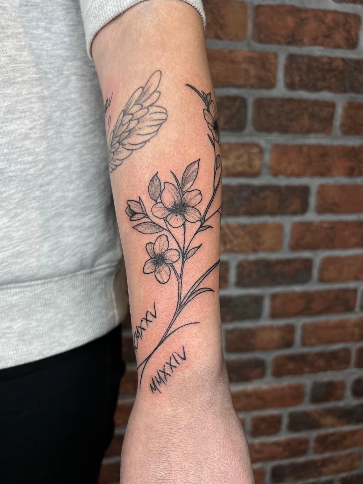 Willkommen auf der Detailseite von Nadia – Ihre Tattoos zeichnen sich durch beeindruckenden Präzision im mit schwarzer Farbe aus.