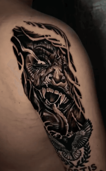 Meisterhafte Techniken: Notoryu kombiniert in seinen Arbeiten eine geschickte Verwendung von Schattierungen und Farben, um lebendige und dynamische Tattoos zu kreieren, die oft eine realistische Tiefe und Detailtreue aufweisen.