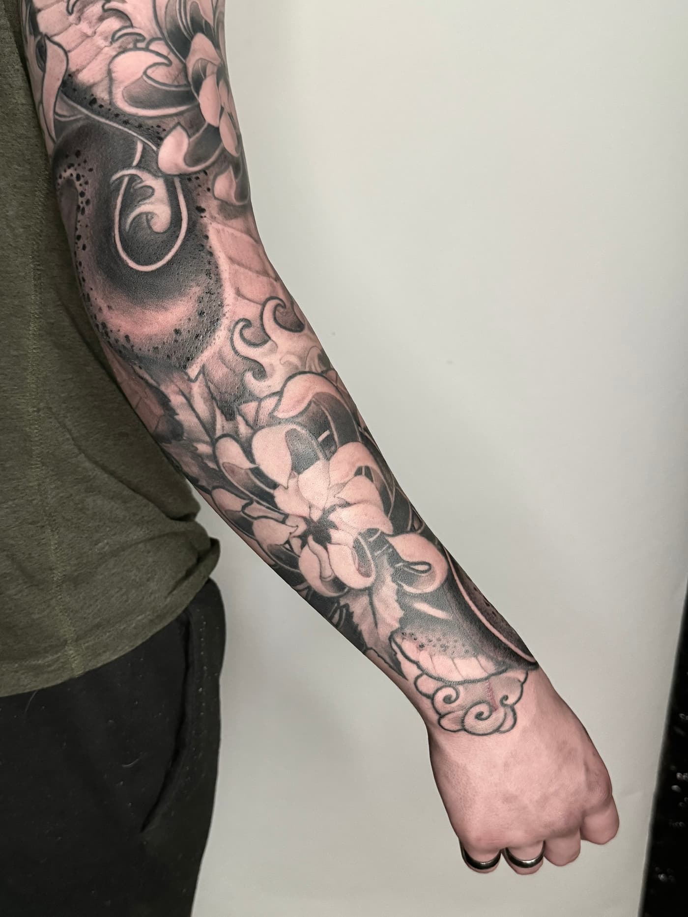 Deine Anatomie gibt den Rhythmus für das Design vor, sodass jedes Motiv natürlich mit den Körperlinien fließt. Der kreative Prozess bleibt dabei dynamisch: Finale Anpassungen an Größe und Platzierung bespricht Raul mit dir direkt im Studio vor dem Termin.