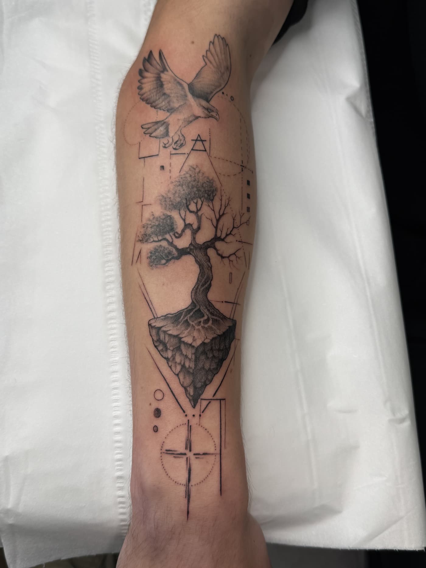 Technische Exzellenz zeigt sich bei Raul in einer makellosen Linienführung und der Haltbarkeit feinster Schattierungen. Durch den gezielten Einsatz von Dotwork und präzisen Kontrasten erzeugt er eine Tiefe, die selbst minimalistische Motive lebendig und ausdrucksstark wirken lässt.