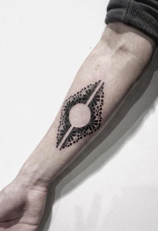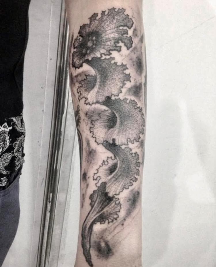 Willkommen auf der Detailseite von Slap – Seine Tattoos zeichnen sich durch beeindruckenden Präzision im mit schwarzer Farbe aus.