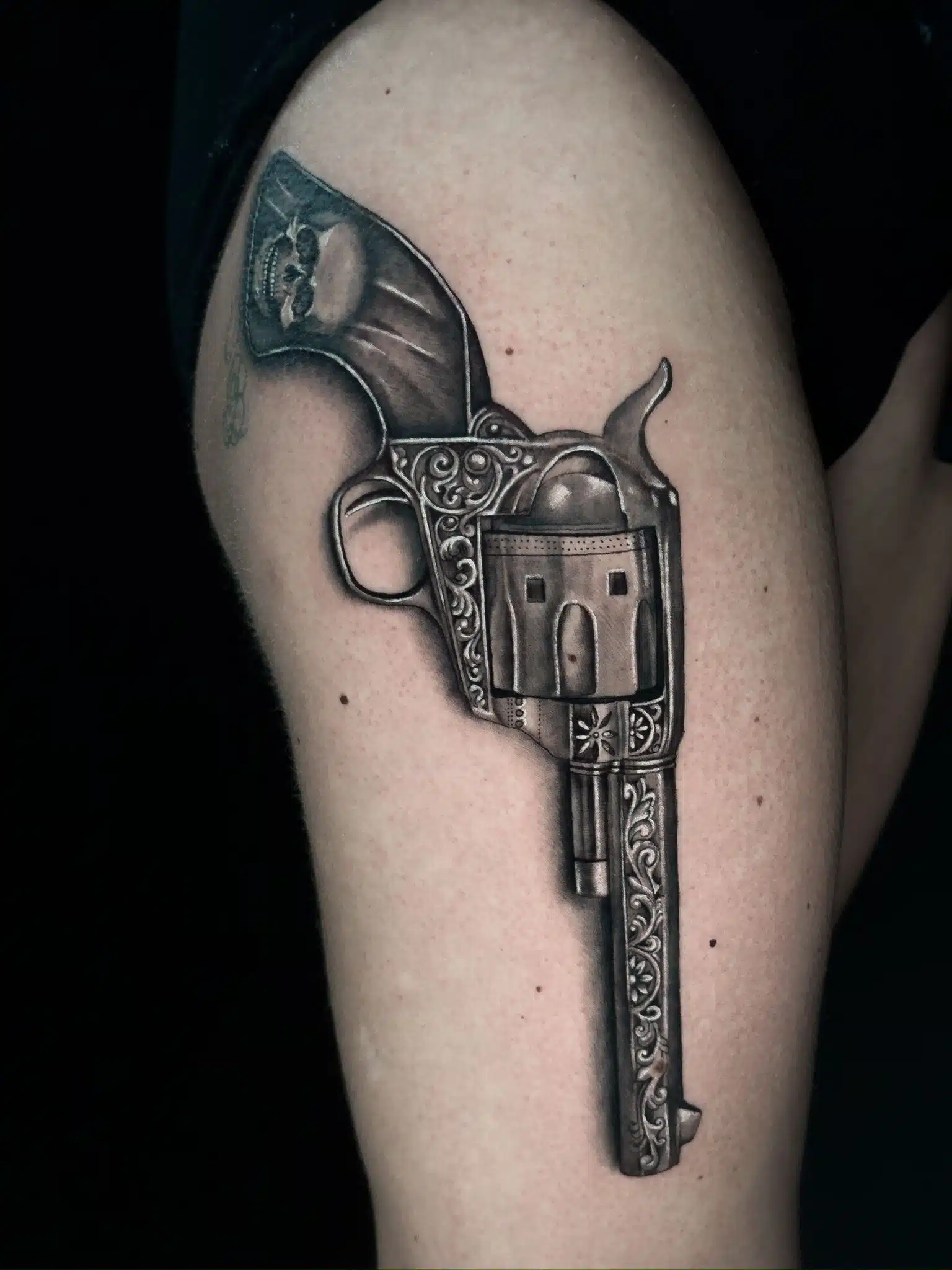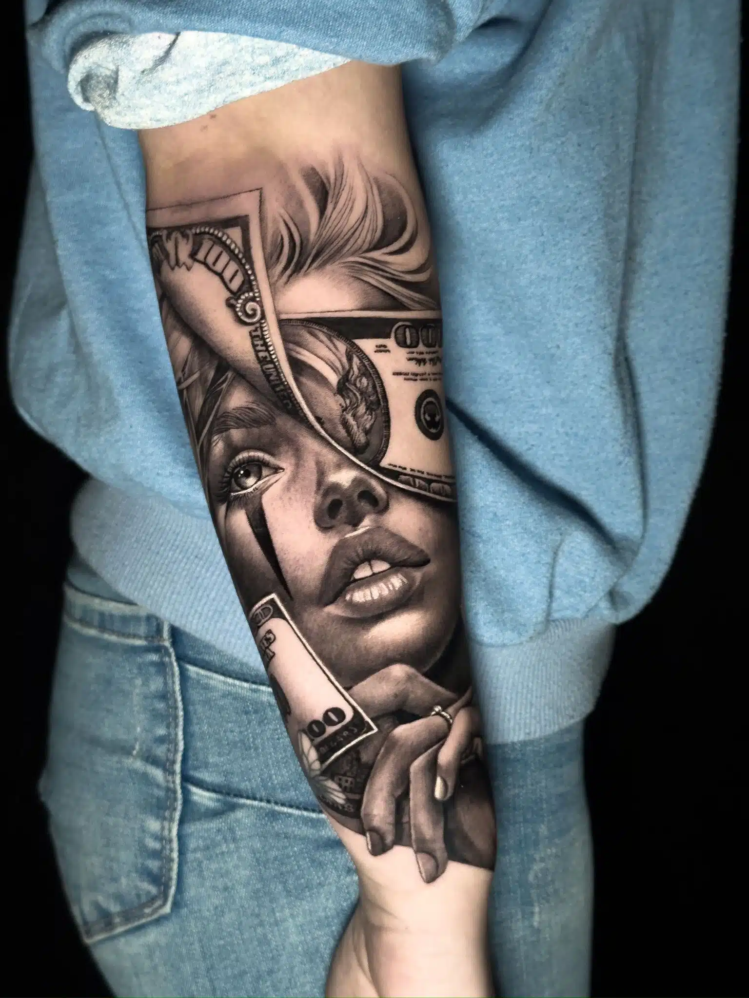 Meisterhafte Techniken: Tina hat sich auf realistische Schwarz-Weiß-Tattoos spezialisiert und dabei meisterhafte Techniken wie Schattierung und Detailtreue verwendet, um lebendige und ausdrucksstarke Kunstwerke auf der Haut zu schaffen.