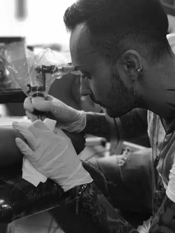 Willkommen auf der Detailseite von Tiziano – Er ist bekannt für seine klaren Linien und feinen Schattierungen, die jedes Tattoo, ob groß oder klein, mit Präzision und Kunstfertigkeit zum Leben erwecken.