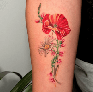 Bevorzugte Stile: Ihre bevorzugten Stile kombinieren Elemente des Neotraditionalismus und des Aquarell-Tattoos, häufig mit organischen Formen und leuchtenden Farben, die das Motiv lebendig und dynamisch wirken lassen.