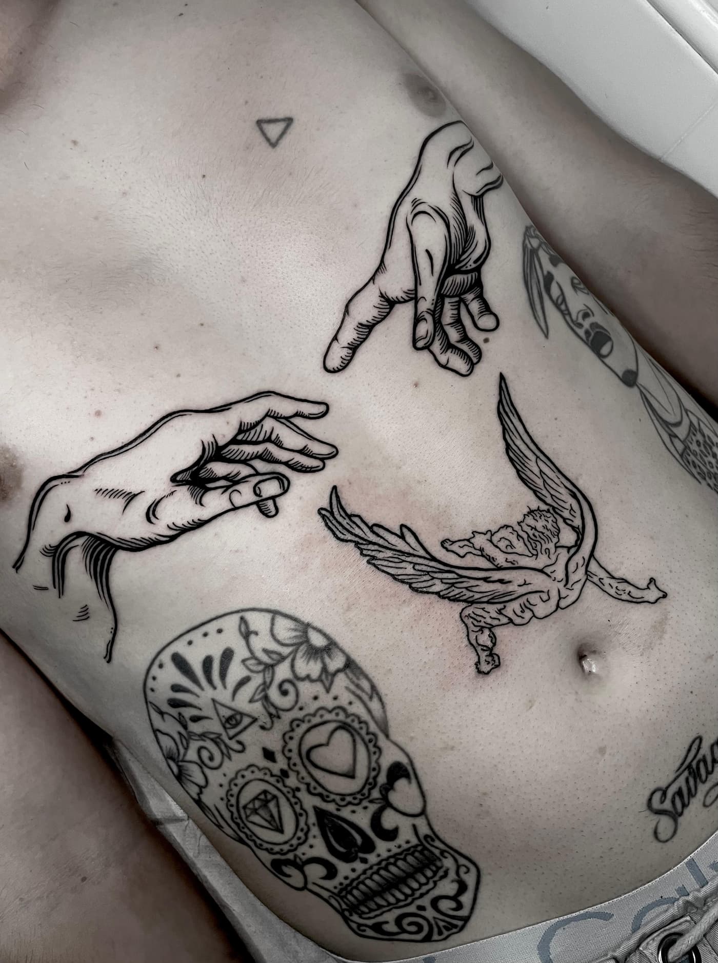Seine technische Meisterschaft zeigt sich in der akribischen Sättigung tiefster Schwarzflächen und der gleichzeitigen Kontrolle über hauchdünne Single-Needle-Linien. Besonders in den Micro-Realism-Elementen beweist Ziggy eine außergewöhnliche Schärfe, die selbst bei kleinsten Dimensionen maximale Haltbarkeit und Klarheit verspricht. Die bewusste Setzung von Licht und Schatten verleiht seinen grafischen Arbeiten eine plastische Dimension, die über klassische Tattoos hinausgeht.