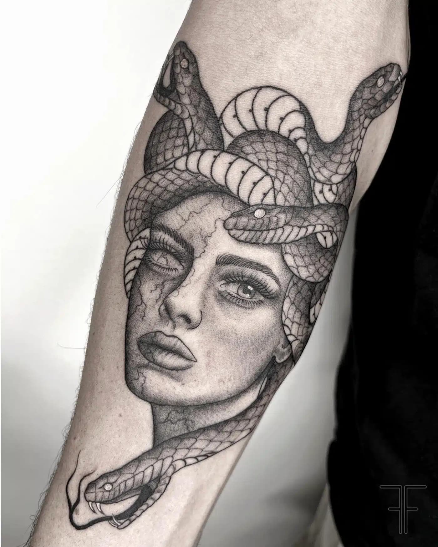 Willkommen auf der Detailseite von Fede – Ihre Kunst ist geprägt von Präzision und Anmut, mit der sie die Eleganz und Schönheit der Frau in ihren Tattoos subtil und doch kraftvoll unterstreicht.