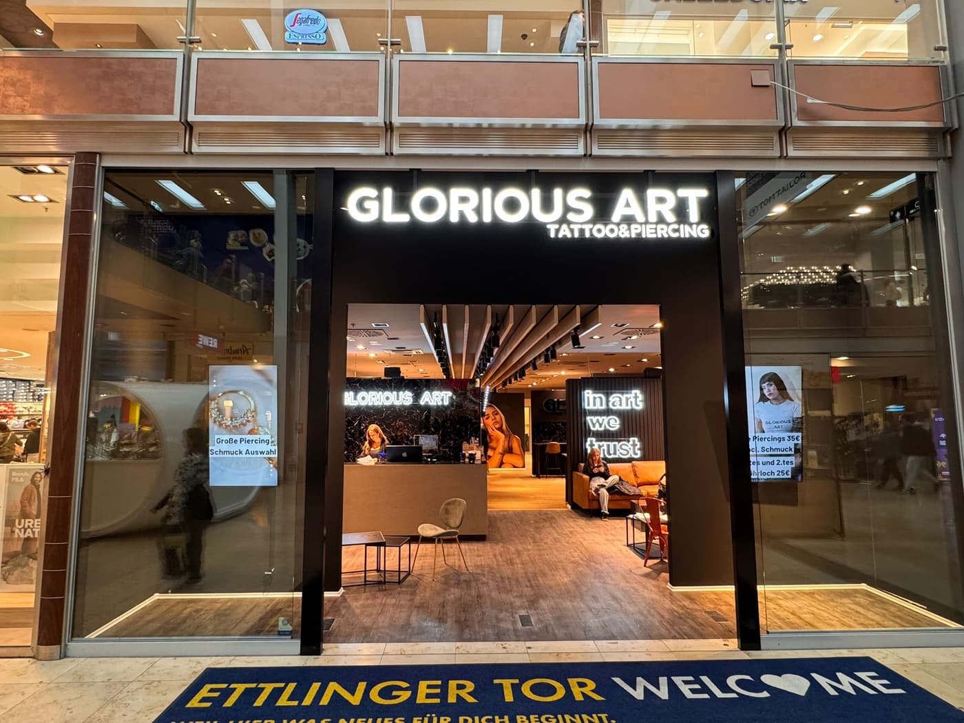 Unsere Studios bieten eine einladende Atmosphäre, großzügige Wartebereiche und eine breite Auswahl an Tattoo- und Piercing-Dienstleistungen.