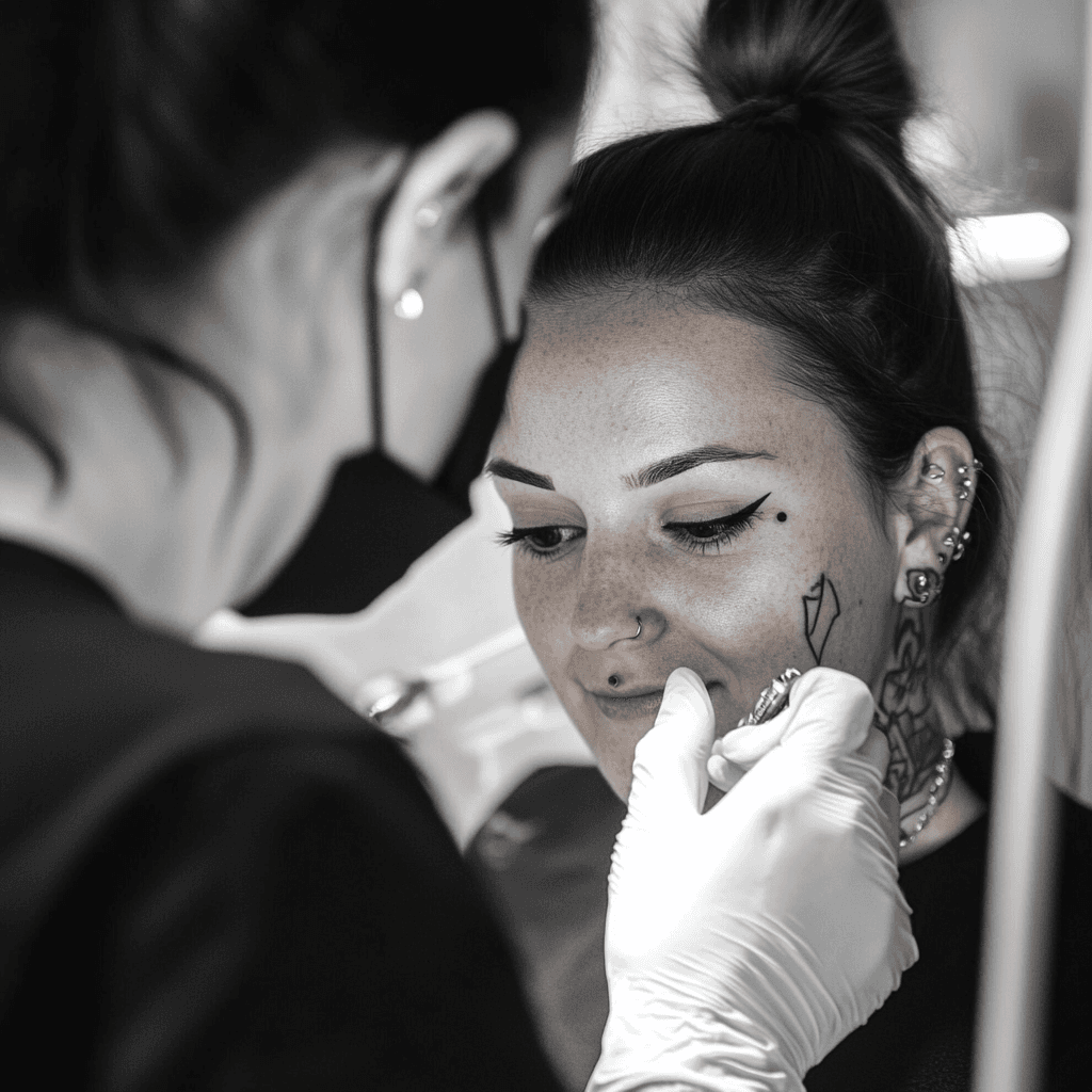 Nun geht es ans Eingemachte! Unser professioneller Piercer markiert mit dir zusammen die exakte Stelle, um eine perfekte Platzierung sicherzustellen. Anschließend wird die Haut gründlich desinfiziert, bevor das Piercing mit einer sterilen Nadel präzise und sanft gestochen wird. Dank unserer erfahrenen Piercer und modernster Techniken verläuft der Vorgang schnell und so angenehm wie möglich – für ein perfektes und sicheres Ergebnis!